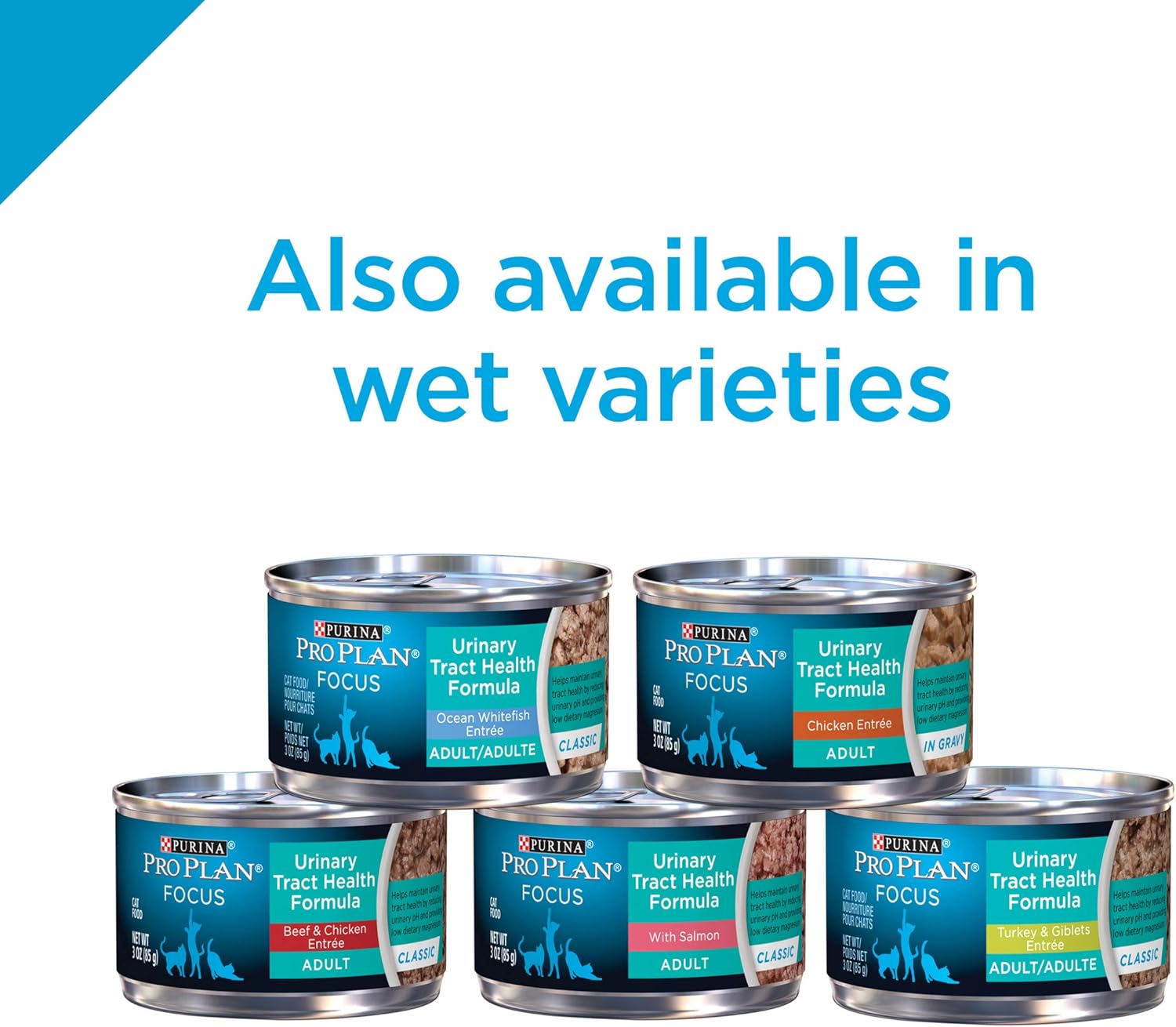 Serve your cat targeted nutrition and delicious flavor with Purina Pro Plan SPECIALIZED Urinary Tract Health Formula adult dry cat food. Our cat urinary care food formula helps your cat maintain her urinary tract health by reducing urinary pH and providing her with low dietary magnesium. Linoleic acid, an omega-6 fatty acid, goes into this cat dry food to help maintain her healthy skin and coat, and it supports her strong bones and healthy joints with calcium, phosphorous and other nutrients. Made with real chicken, this dry food for cats delivers a tasty meal every time, and it's made with no artificial colors or flavors. We choose each high-quality ingredient for this adult cat food to have a specific purpose, so you know she's getting extra-care nutrition with each serving. When you choose this Purina Pro Plan formula, you're choosing nutrient-rich meals for your favorite feline in a tasty dry cat food formulated to meet her unique urinary tract health needs.