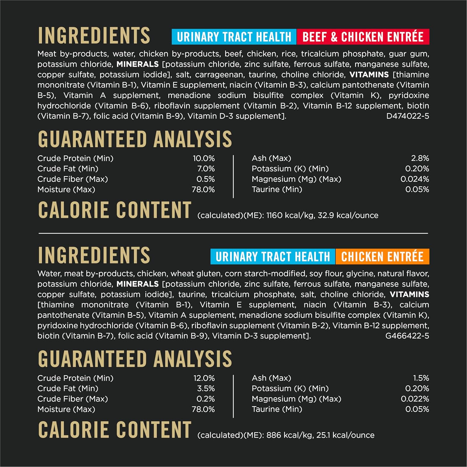 - Included Components: Twelve (12) 5.5 oz. Cans - Purina Pro Plan Urinary Cat Food, Wet Cat Food Variety Pack, Urinary Tract Health Beef and Chicken Entrees