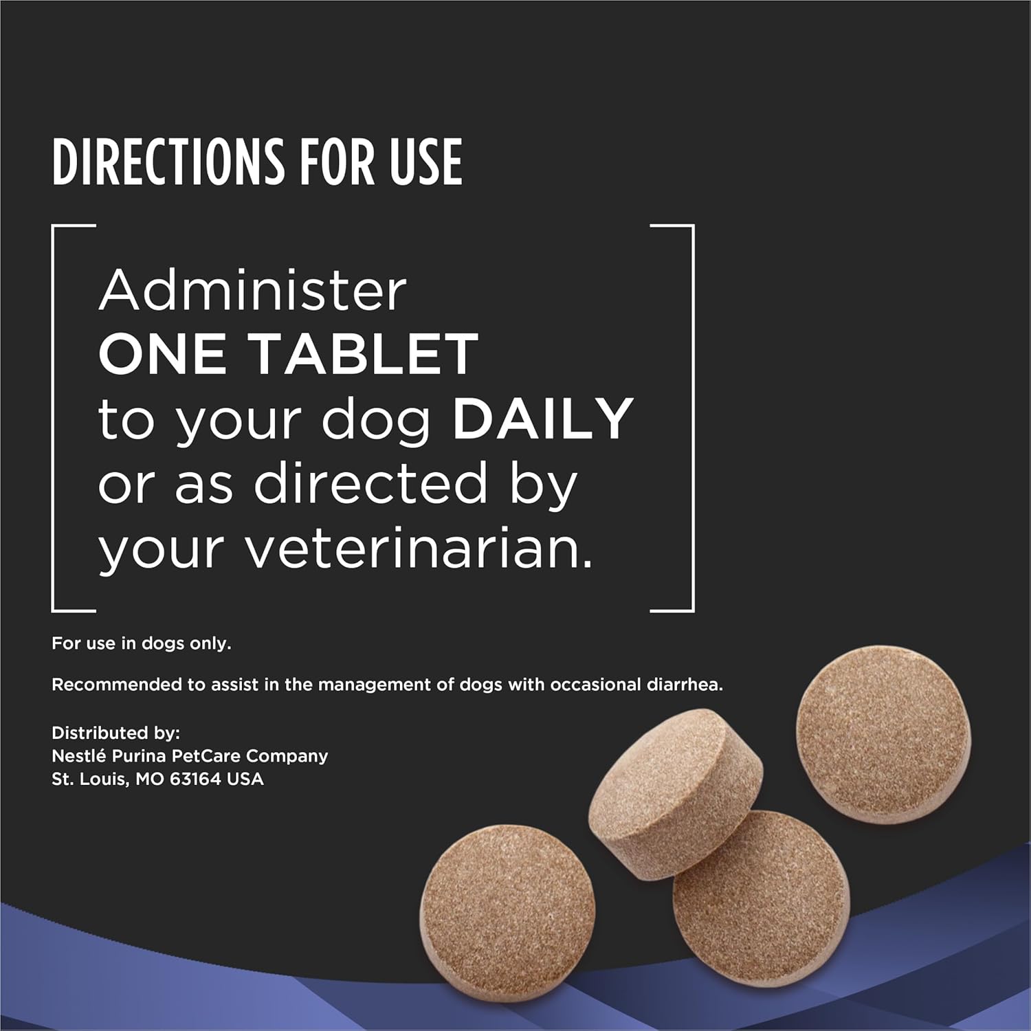 - Directions: Purina Pro Plan Veterinary Supplements FortiFlora Chewable Tablet is a probiotic supplement for the dietary management of dogs with diarrhea.FEEDING INSTRUCTIONS Feed one tablet to your dog daily under the supervision or direction of your veterinarian. USE ONLY AS DIRECTED BY YOUR VETERINARIAN. Contains a source of live (viable) naturally occurring microorganisms.
