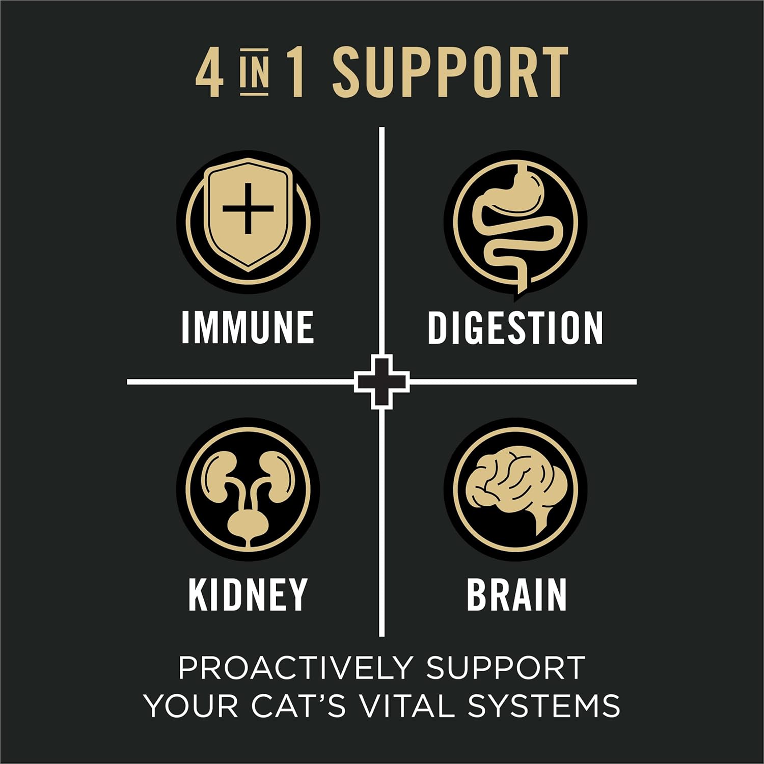 Serve your senior cat a high protein cat food designed to nourish four vital systems of their health with Purina Pro Plan Vital Systems Salmon and Rice Formula Dry Senior Cat Food 4-in-1 Formula. Crafted in partnership with our expert nutritionists, this Purina Pro Plan cat food features advanced 4-in-1 support for senior cats. This formula is designed to offer your cat companion immune support with an antioxidant blend, prebiotic fiber for cats for digestive health, Omega-3 fatty acids for kidney support for cats and choline for brain health. Every serving of this adult cat kibble includes 100 percent complete and balanced nutrition, with real salmon as the number one ingredient. Feel confident you’re giving your cat high-quality nutrition as Purina Pro Plan Cat Food Vital Systems formulas are proudly manufactured at Purina-owned US facilities. Give your cat a formula that offers healthy ingredients for proactive health by feeding them this high-quality Purina cat dry food formula.
