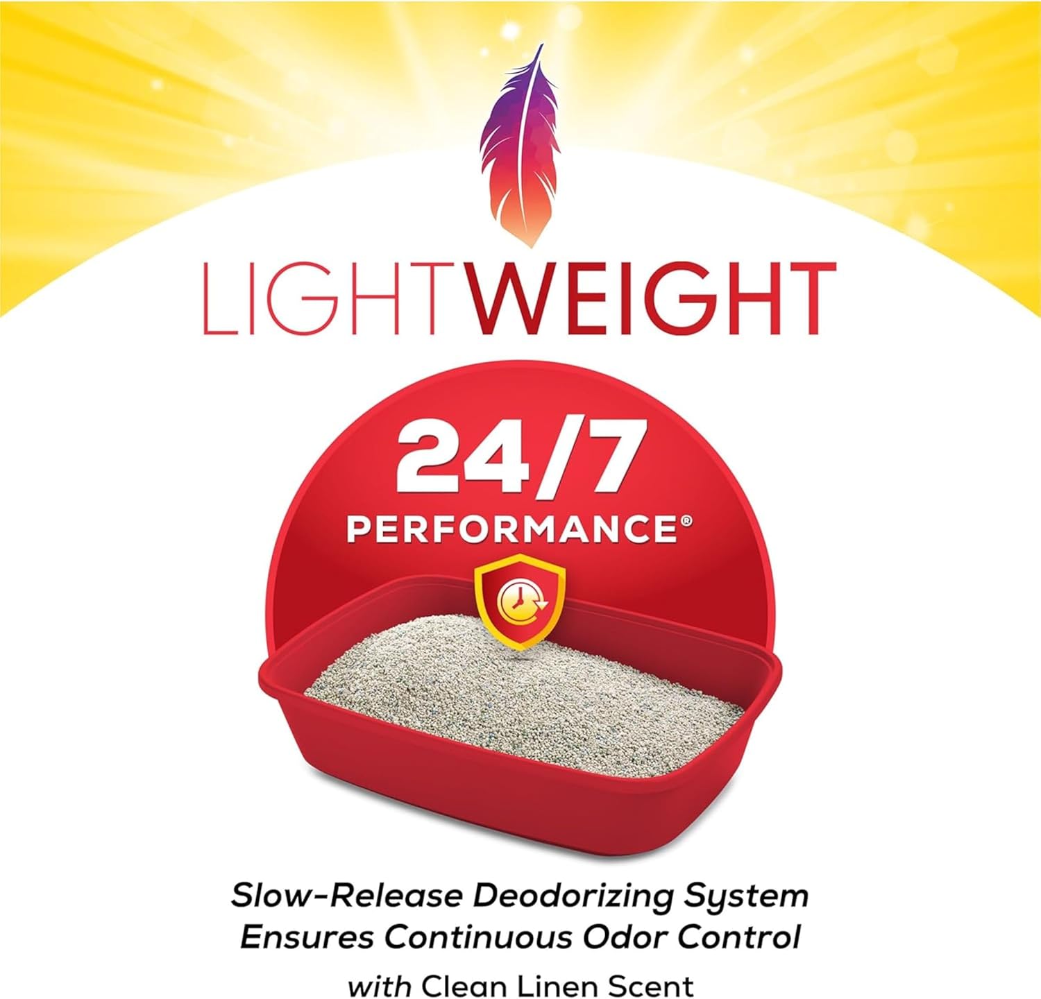 Conquer litter box maintenance without the pain of litterback with Purina Tidy Cats LightWeight 24/7 Performance clumping, scoopable cat litter. With an added Ammonia Blocker that keeps ammonia odor from forming for 21 days when used as directed, this multi cat litter offers great odor protection with the same amount of litter at a fraction of the weight of regular cat litter. Tidy Cats litter contains an innovative triple-odor protection to defend your home against strong smells, leaving behind a fresh scent. The lightweight litter is easy to carry, weighing 50 percent less than the leading clumping cat litter and provides a clean and easy pour. The low dust cat litter is 99.9 percent dust free and forms strong, tight clumps for quick and easy scooping, while the slow-release deodorizing system ensures continuous odor control with absorbency and clumping in every patented granule. Give your cats around-the-clock odor control and a clean place to call their own with Purina Tidy Cats LightWeight 24/7 Performance clumping, scoopable cat litter.