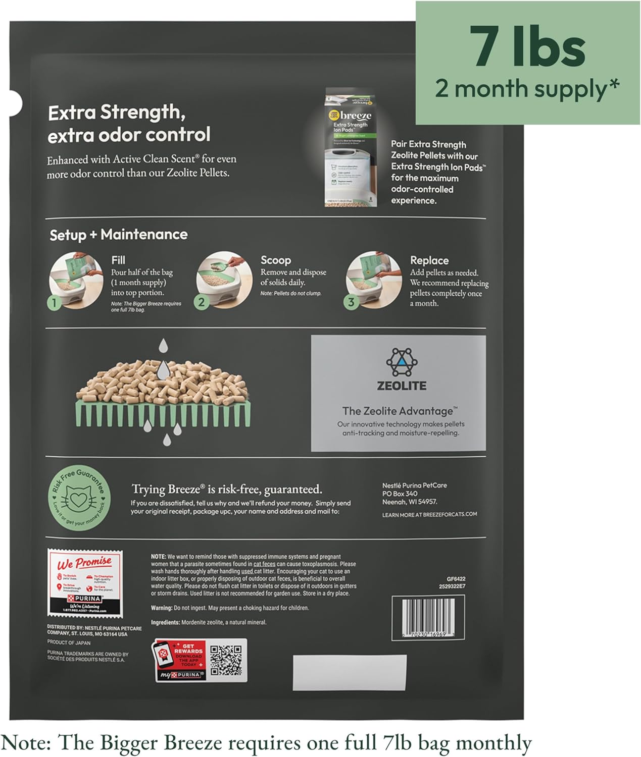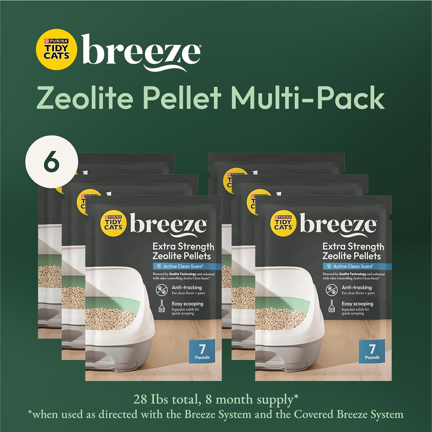 Control odor and make cleaning up your cat's litter box hassle-free with this Purina Tidy Cats Breeze cat litter Scented Zeolite Cat Litter Pellets Refill. Designed to work with the Tidy Cats Breeze litter system (sold separately), these Zeolite litter pellets for Breeze system allow urine to pass through to be absorbed by the Ion pad, leaving solid waste on top for easy scooping. The non clumping cat litter pellets dehydrate solid waste for odor control and are 99.9 percent dust free for a clean and tidy litter box area. Ideal for multi-cat families, these multi cat litter Zeolite pellets feature a revitalizing scent to keep your house smelling fresh. Combined with the Breeze litter box and Ion pad, this litter simplifies litter box maintenance. The innovative pellets last up to 30 days (when used as directed) for a budget-friendly litter alternative with powerful odor control. Check litter box maintenance off your to-do list with these cat litter pellets and the Breeze Litter Box system.