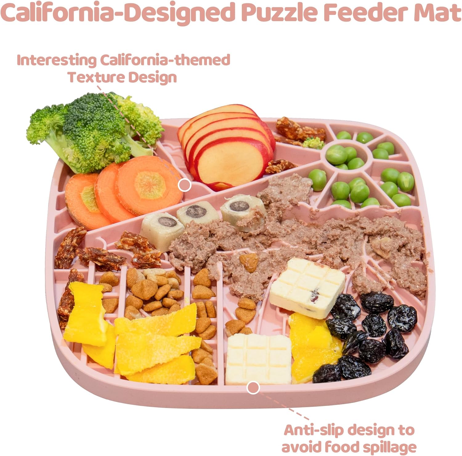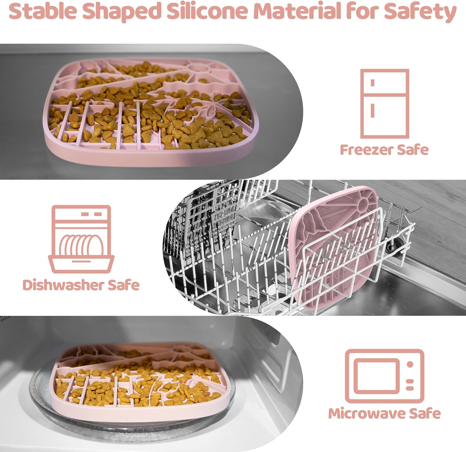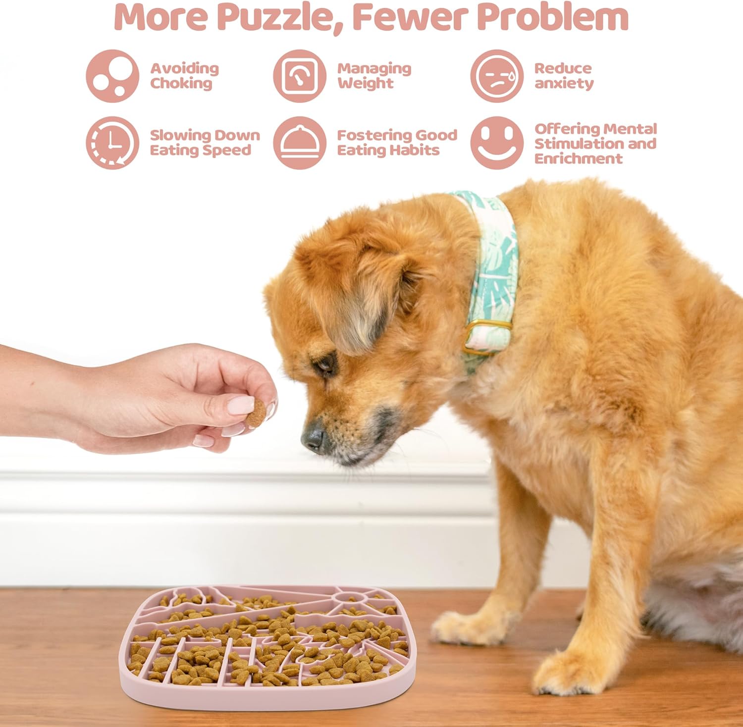 About this item Mental Stimulation and Fun: Keep your dog engaged and entertained with our Puzzle Feeder lick mat for dogs. Fill the lick mat with their favorite treats like peanut butter, kibble, or yogurt, and watch your dog enjoy the lick process. This pet feeding mat helps reduce destructive behaviors, keeping your furry friend busy and happy when you're away Relieve Anxiety: Our dog enrichment Lick Mat can help if your dog gets stressed by loud noises or being alone. With its unique textured design, it entices dogs to lick, effectively relieving anxiety and stress, bringing a sense of calm. It's more than a pet feeding mat; it's your dog's stress reliever in challenging moments Dog Slow Feeder Dog Mat: For dogs that gobble their food, our dog slow feeder mat is the solution to indigestion and other issues. By extending meal times, the dog slow feeder encourages slower eating, reducing the risk of vomiting and overeating, and providing healthier eating habits for your dog Easy Cleanup Safe Material: Designed for easy cleanup, our dog enrichment toys is made of silicone material and is dishwasher safe. With thicker edges that can hold up to 3 cups of food, which helps avoid spillage, making it easy to say goodbye to the hassle of cleaning up after mealtime. Enjoy a more convenient and tidy feeding experience Freezable Dog Mat: Our enrichment toys for dogs is suitable for daily feeding and can be placed in the freezer for added fun at mealtime. Normally, the dog anxiety relief mat can slow your dog's eating speed, extending meal times by up to 10 times longer, and when frozen, it further extends eating time, encouraging your dog to eat even more slowly! It's microwave safe, making it easy for you to use › See more product details