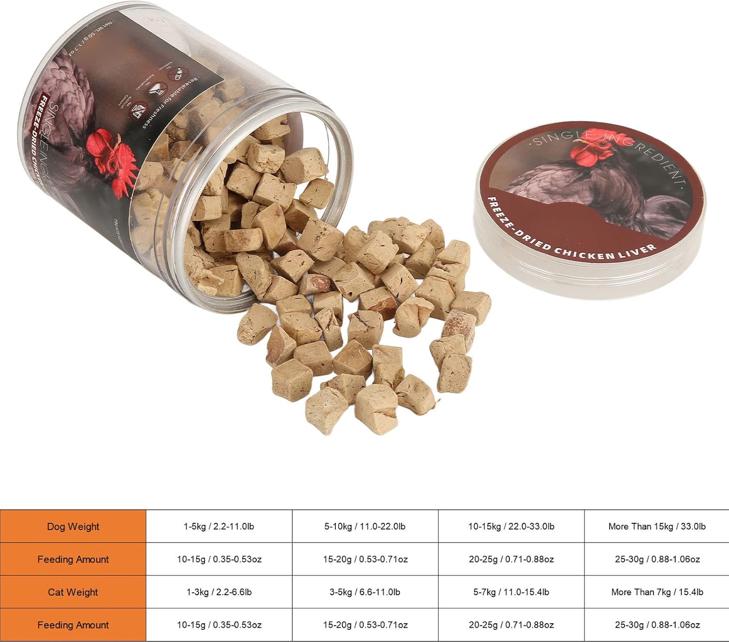 - Directions: Dog cat freeze dried chicken liver treat should be introduced to pets in small amounts for the first time due to its raw meat processing, as some pets may not be able to adapt to the gastrointestinal system immediately.