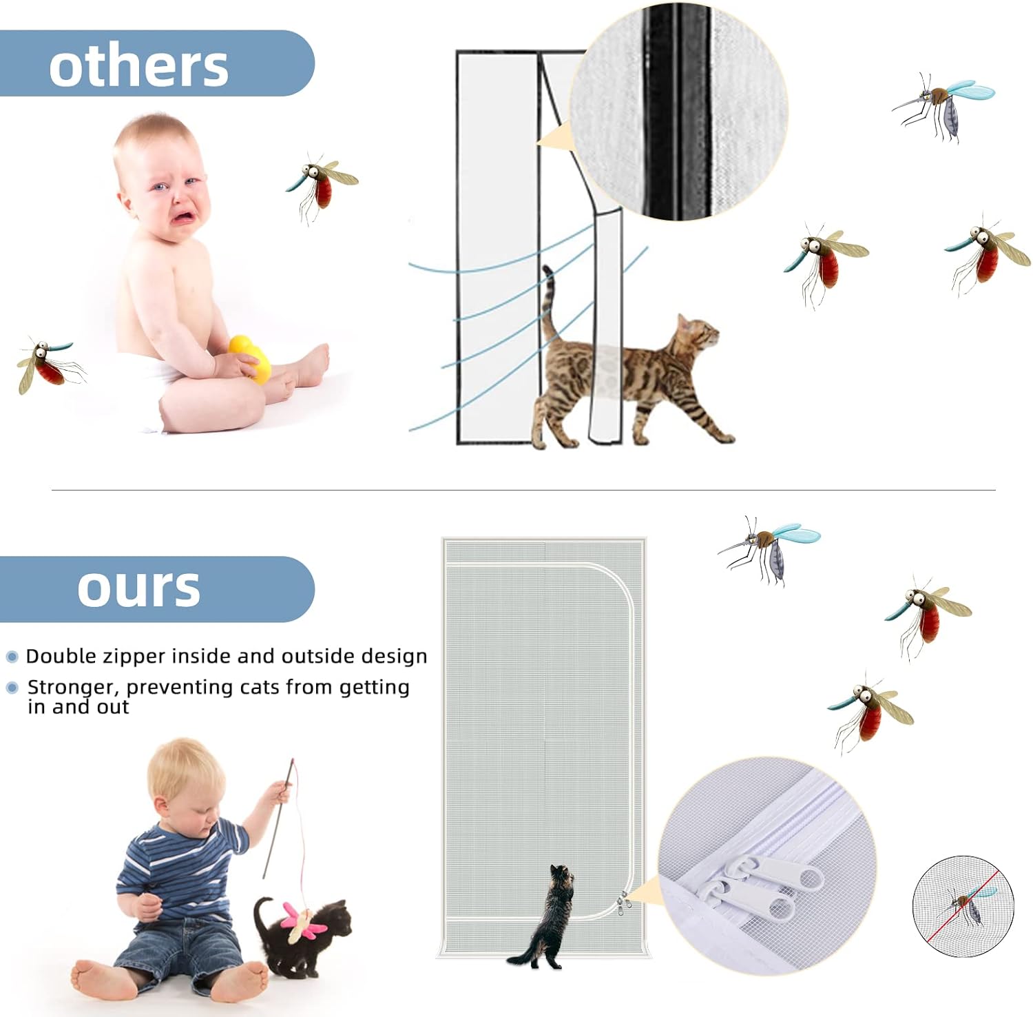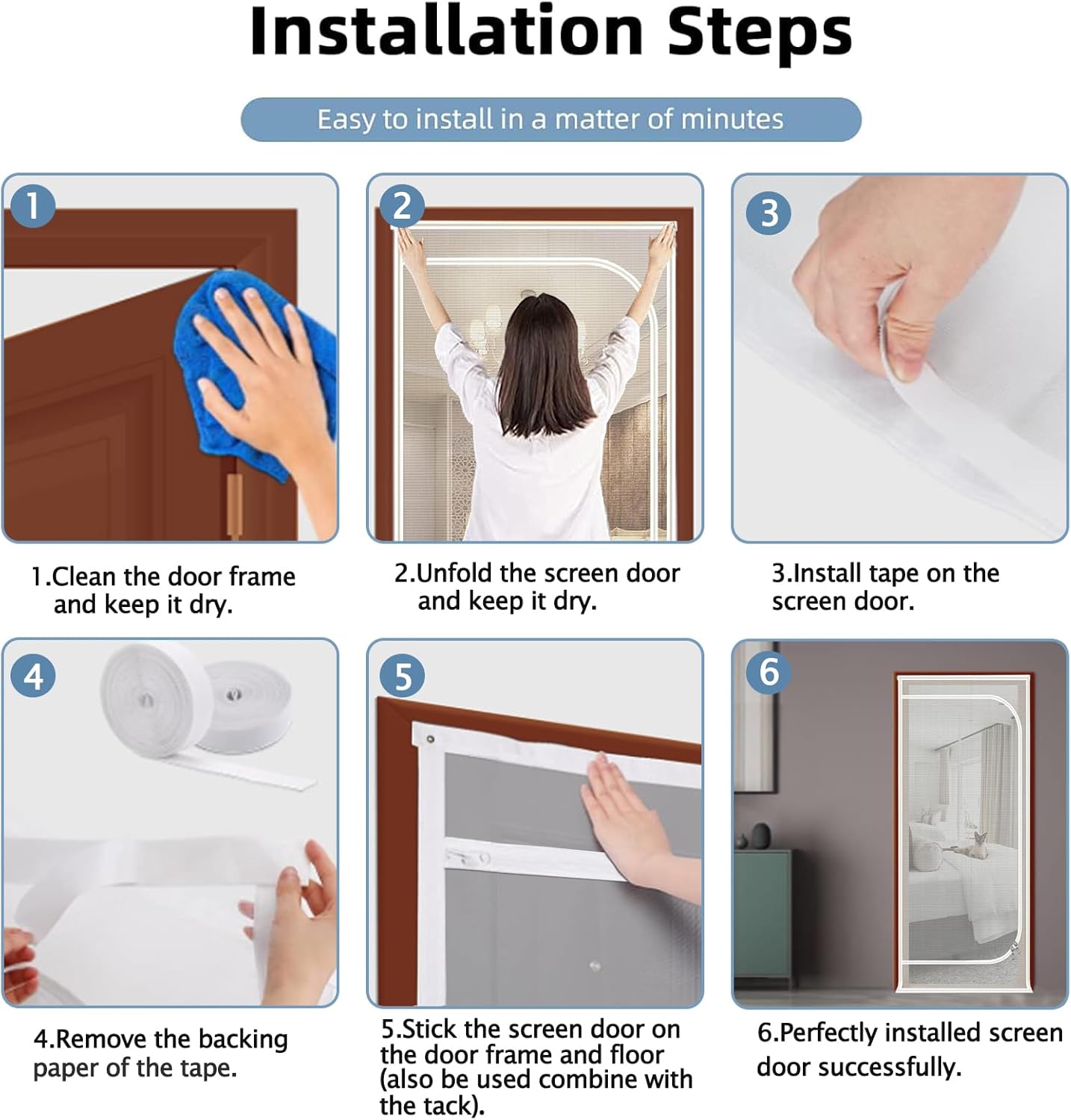 About this item đžăFits All Door Opening Sizes Up To 32x80"ă: Pet screen size 34"x82",Fits door opening size up to 32''x80''. (Width up to 32'',Length up to 80''. Suitable for door opening size only, door frame not included.) Important: Measure your door before ordering to be sure our door mesh screen will fit. See all available sizes to order the perfect size for your door opening. đžăZipper Screen Dooră: When your pets can't get along well,you can separate them,or when you introduce new friends to your pet,They can see and smell but canât touch each other.this screen is a neat tool to help safely ease the introduction along. đžăEffective Anti-cată: We has designed a double zipper inside and outside on the cat-resistant mesh screen,which is convenient for you to open the door screen.Besides, it's adhesive and hook and loop tape are very strong, and the screen will not be scratched off by the cat.It can effectively stop cats from running out of the room while keeping the air circulating, and it can also effectively prevent biting creatures from flying in. đžăReinforced Cat Screen Dooră: Made from thickened vinyl-coated steel wire,Stitches has been upgraded with higher force sewing thread.It will prevent your screen door from rip due to cats claws and climbing,high density mesh,which is much thicker and more durable than normal fiberglass screen material. đžăEasy to installă: No tools required.Simply peel the adhesive backing off the hook&loop strips and apply to door frame.Clean the surface of the door frame before installation to ensure a secure and lasting fit.Can be widely used for various doors:storm doors,Interior doors,Standard door,greenhouse door and so on. đžăServiceă: We strive for 100% customer satisfaction.If you have any questions,please contact us.We promise to solve it for you until you are satisfied. âș See more product details
