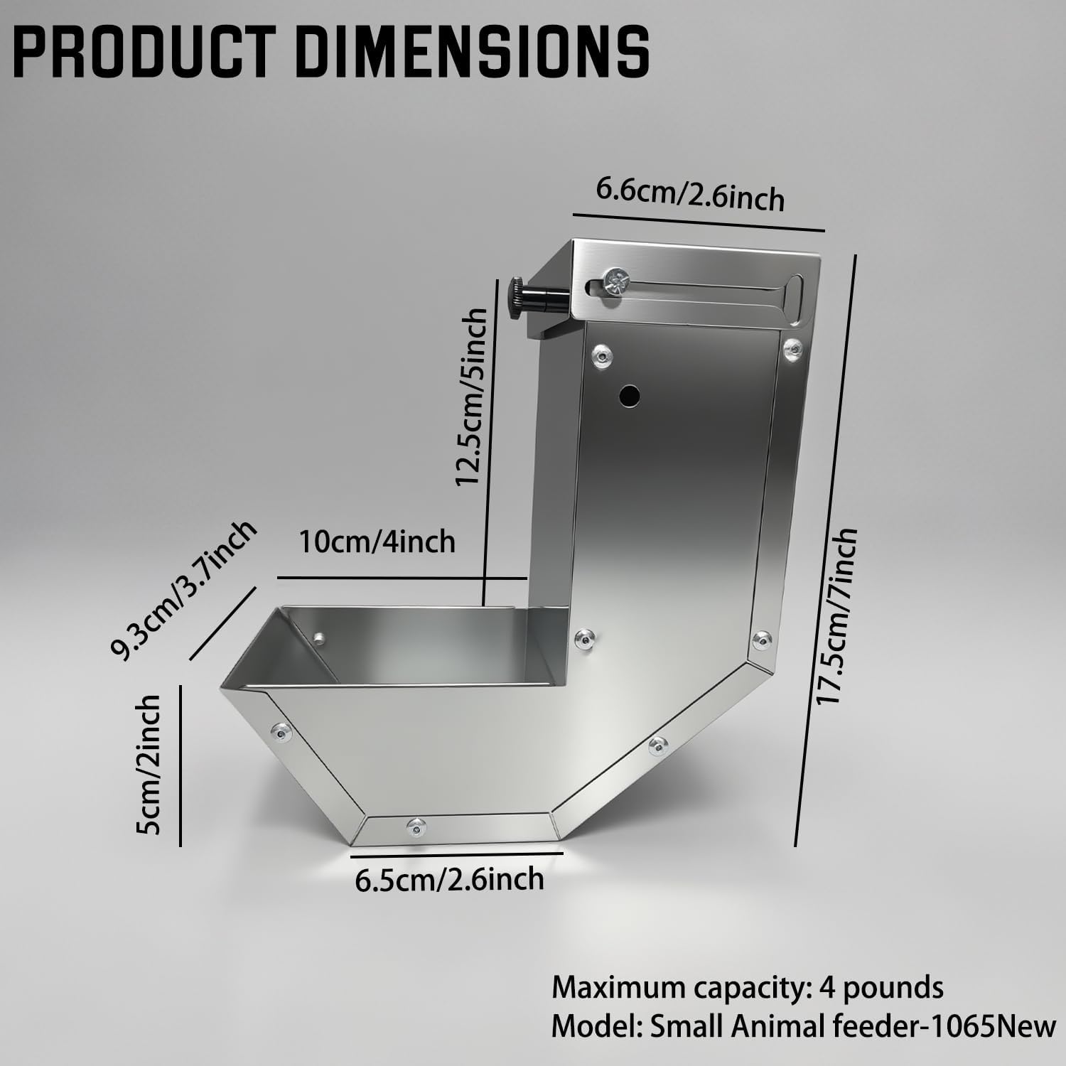 Brand:Paiaojia Name:Small Animal Stainless Steel Gravity Feeder Features: These feeders are made of stainless steel metal, which has a long lifespan and durability, and can serve your pet for many years . This design adopts a Flip over the lid to prevent dust and debris from entering the feed, ensuring that small pets can eat clean feed every time Material: Stainless steel metal Color: Silver Size: 3.7 x 4 x 7 inches/9.3 x 10 x 17.5 centimeters The package includes: 1pc Stainless Steel Metal small animal feeder Notes: Perfect For Rabbits And Other Small Animals - This rabbit and small animal feeder is perfect for many different types of small animals, it's easy to use, clean and is compatible with most wire cage types Manual measurement, please allow for slight dimensional errors