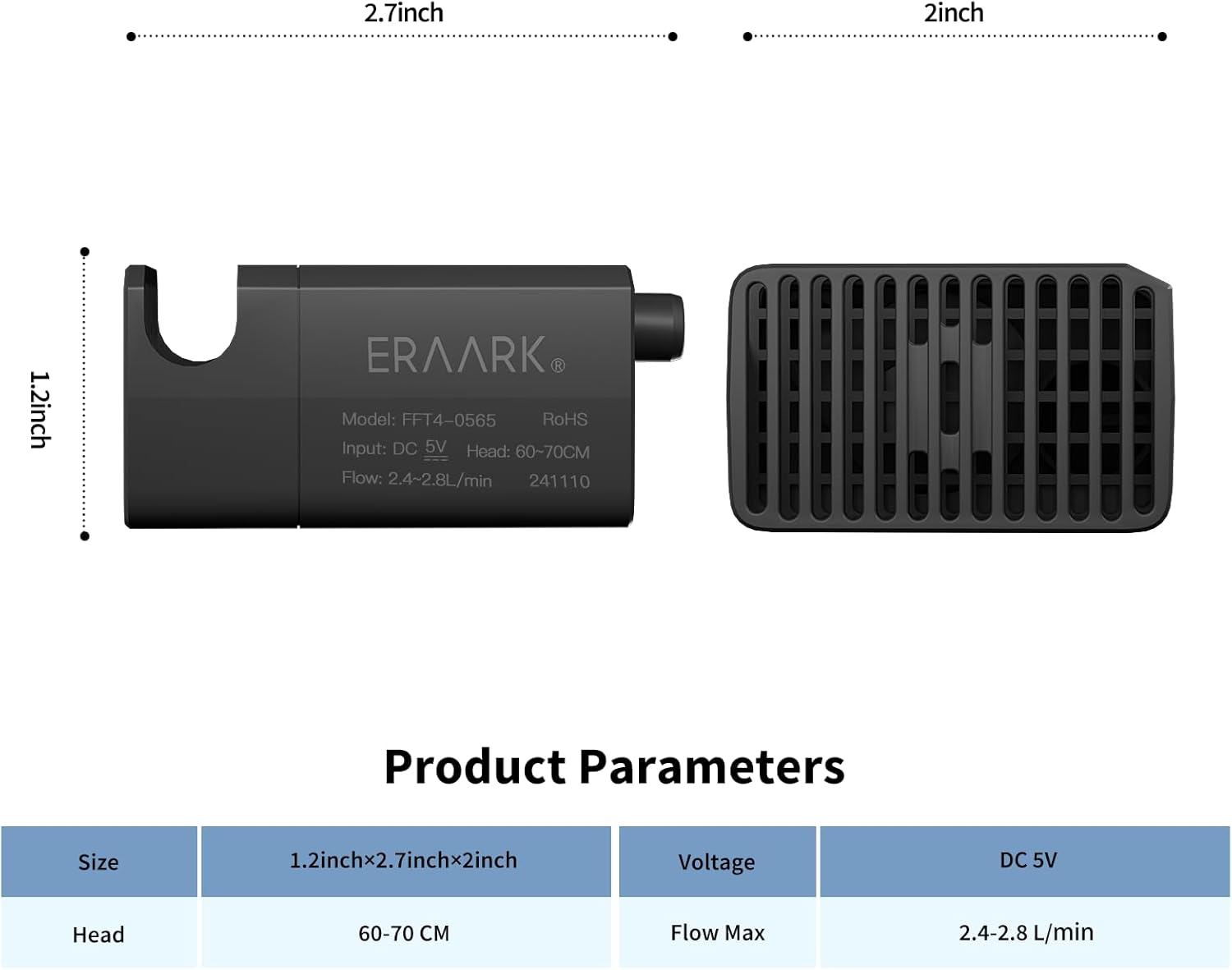 About this item This water pump is compatible with ERAARK 1.5 Gallon Mini Aquarium Smart Fish Tank Easy to assemble and replace:The pump can be disassembled and replaced. Please disassemble and clean pump regularly Ultra Quiet Design:This pump has no noise and provides a quiet living environment for your fish It’s recommended to replace every 6 months There are 4 suction cups at the bottom for easy installation › See more product details