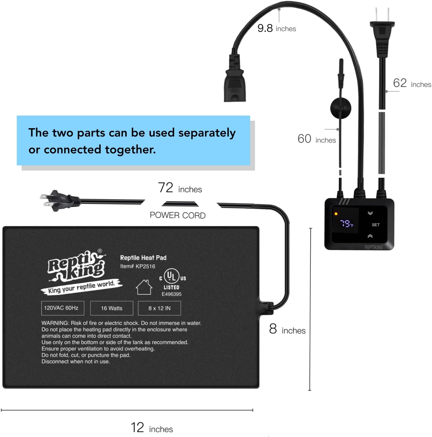 - Size: Heat Pad (16W) & Thermostat