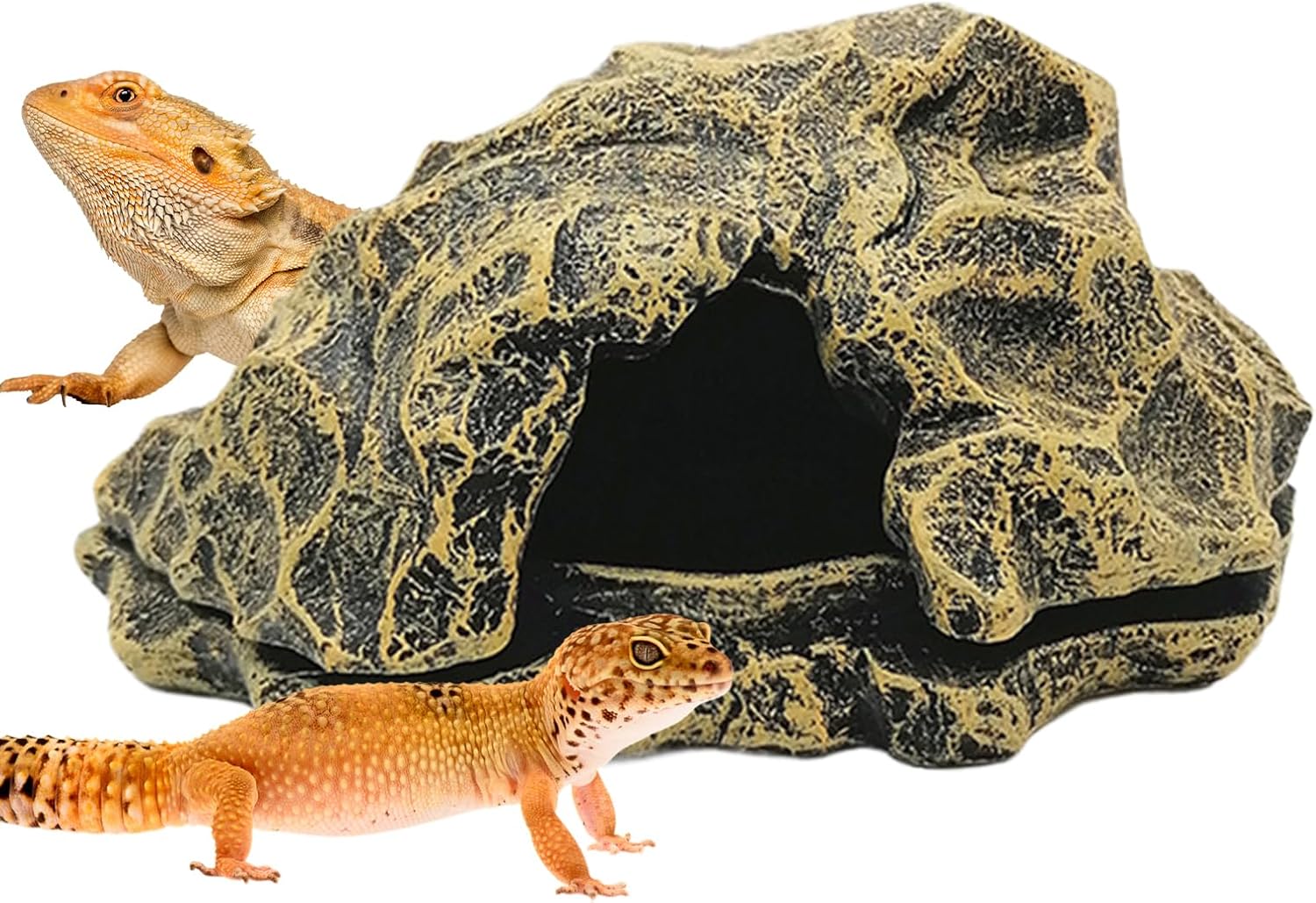 Designed natural formations, the reptile cave adds a decorative touch to any indoor landscape setup. Suitable for small animals including ball pythons, turtles, turtles, geckos, bearded dragons, crabs, shrimp and amphibians, provides a cozy retreat and place to enjoy. PRODUCT SPECIFICATIONS: Product Name: Reptile Cave Product size: about 16x13.5x7.5cm/6.3x5.31x2.95inch Product material: resin Product weight: about 555g Packing list: 1 x Reptile Cave Note: Due to different lighting and screen settings, the colour of the item may be slightly different from the picture. Due to different manual measurements, please allow 1-2 cm size difference.