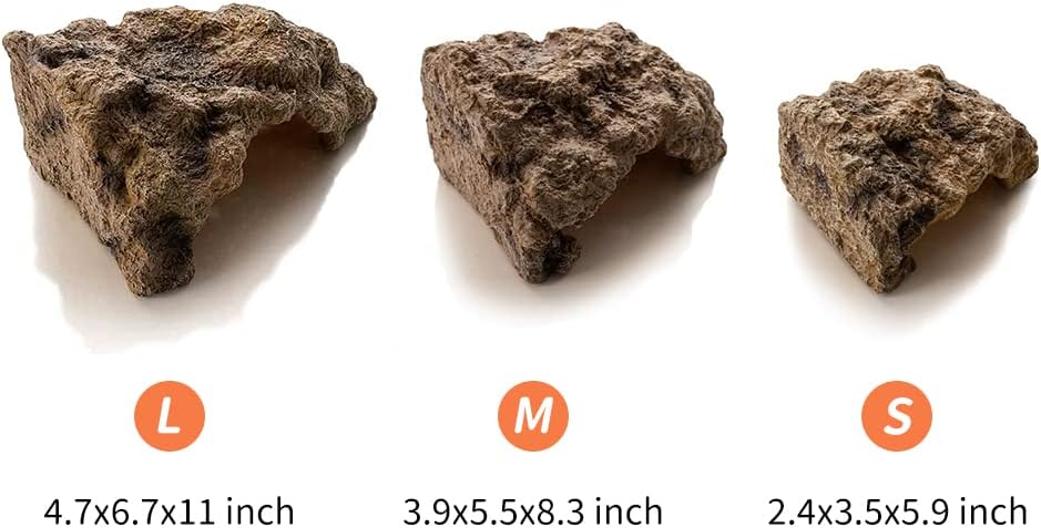 About this item The hide cave provides a perfect hideout and resting place for reptiles and amphibians, making little guys feel safe and help them relieve stress. Safe Materials: The reptiles hide is made of quality resin, which ensures that it is safe for your pets. Easy to clean and durable The Medium Size Cave is suitable for small and medium reptiles, amphibians, or fish shrimp shelter, or just as a decoration in the fish tank or reptiles tank. The right-angle structure design is close to the tank angle, it can save space and effectively increasing the usable area of the glass container. Suitable for many types of reptiles, fit bearded dragon, snakes, spider, scorpion, frogs, chameleons, tree frogs, geckos, tortoises and other amphibians › See more product details
