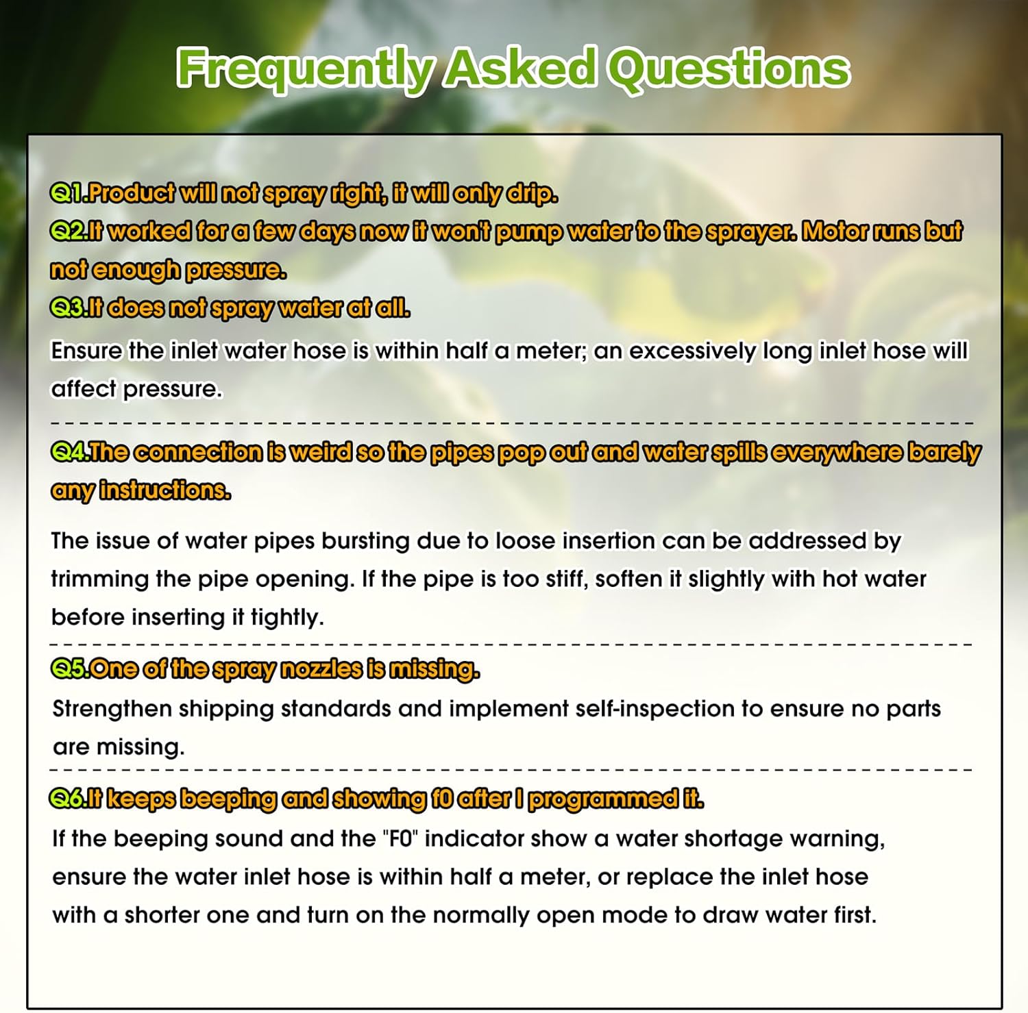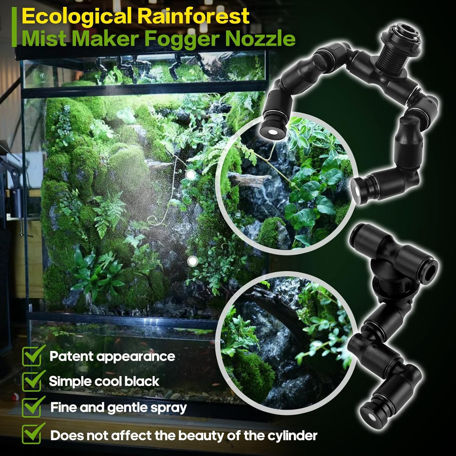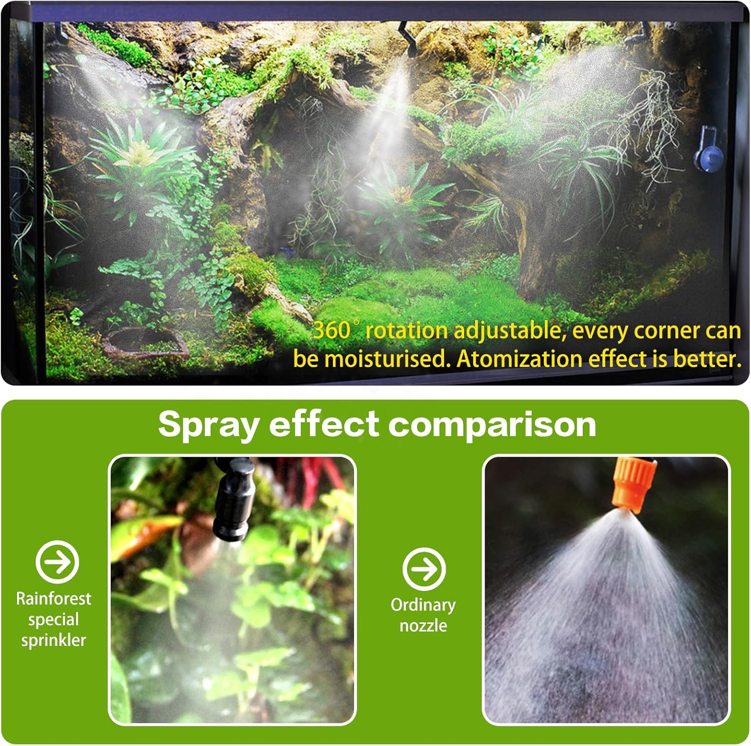About this item 【Newest MYGIIKAKA SMART Reptile Mister】Hydration is necessary for reptile habitats. It's vital for helping them shed, incubate eggs, and stay healthy. reptile humidifiers automates the process of adding moisture to a terrarium. Then your pet can enjoy a consistent environment.Compared to the traditional reptile fogger, ours reptile humidifier don't have a reservoir, you can use your home a large bucket or other tank as the reservoir. Greatly save time and space. 【Smart LED Display Reptile Humidifier with Timer】Only 3 Buttons to set up the reptile mister. Mode button-choose for a regular or automatic spray. Spray Duration-set up spraying time from 5s, 10s, 15-60s, so cycle. Stop Duration-set up stop time every spraying cycle, from 1h, 2h, 3h-24h, so cycle. Once the timer set, the settings are stored in the reptile fogger automatically. There is no need to reset the timer every time you restart the power to the device.LED Display, easy to read. 【360°Rotating Nozzles】High Density Atomization Our reptile mister has two 360 adjustable nozzles, using them can add humidity to your terrarium in all directions and quickly. Note: The spray effect is water mist particles rather than mist. 【Easy to DIY】This reptile mister is easy to install and ready to use in minutes. reptile humidifier provides all the accessories you need - main unit, 2 spray heads, PE water hose, instruction manual, pipe cutter, self-priming head, tee, elbow 5 R clip, 2 plugs and 5 cable ties, all These all allow you to easily DIY your own reptile Terrariums or rainforest tank. USB powered for easy installation anywhere. 【Widely Used】Reptile misting system mainly used in pet, reptile, and other ecological rainforest atomization and humidification; reptile mister also be used to mist gardens, greenhouses, fan cooling, landscaping and so on.It also works as rainforest spray system,greenhouse sprayer,plant watering system,diy self drip irrigation kit and automatic plant waterer,etc.Great choice for Spraying/Humidifying/Cooling/Cleaning. › See more product details