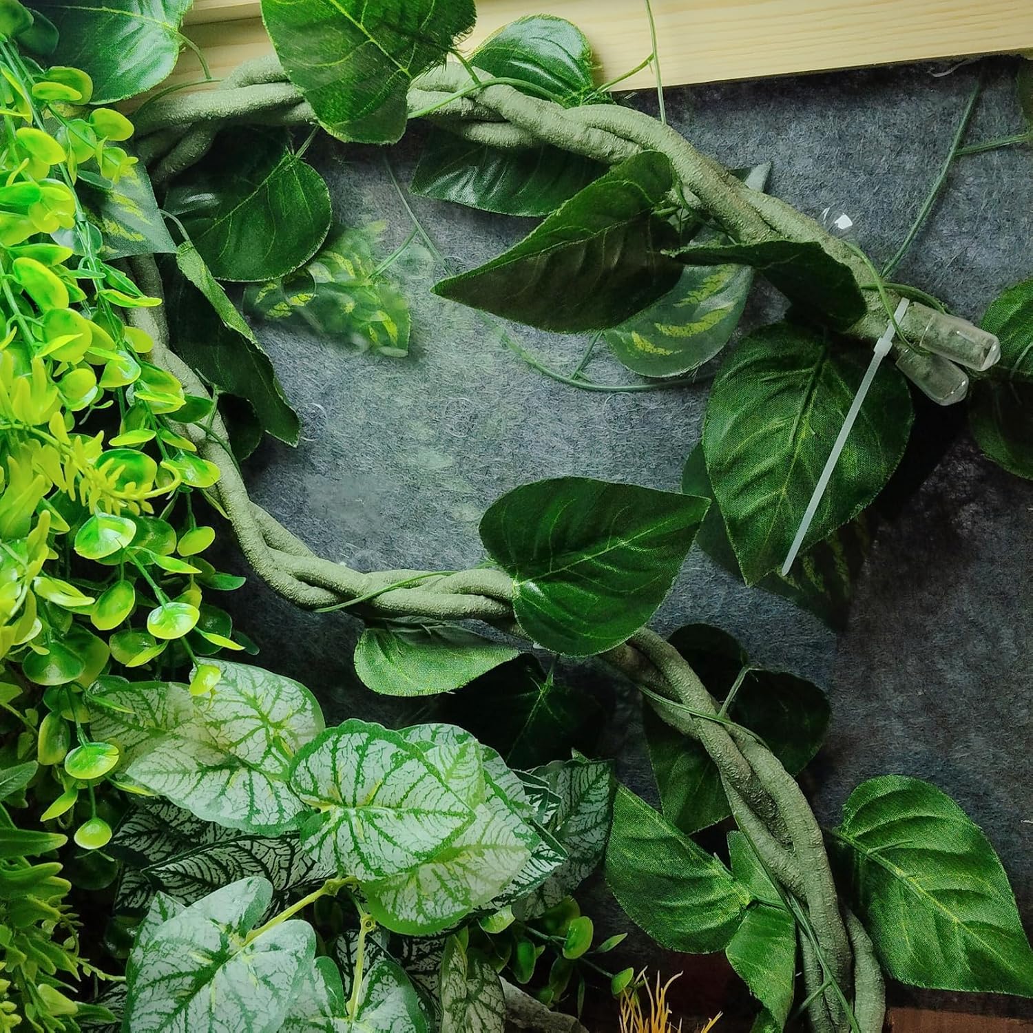 Gxsdj Bendable Snake Climbing Branch, Flexible Reptile Vine for Chameleons, Frogs, Geckos, Snakes, Lizards, SpidersProduct Features:Reptile Vine is sturdy and durable, featuring a soft, flame-retardant PVC surface with an internal metal wire frame. Equipped with zip ties and suction cups, it installs effortlessly in most enclosures to create a natural habitat for your reptile pets.Snake climbing branch includes protective caps to ensure pet safety, effectively preventing exposed metal wires and allowing your reptiles to play safely and healthily within their habitat.The PVC surface of the reptile vine possesses flame-retardant properties. Under normal usage conditions, it can partially delay the risk of combustion caused by prolonged or close exposure to heat lamps, providing a safer environment for your pet. However, always maintain appropriate distance and usage duration to avoid potential hazards from extreme conditions.The rough surface of the climbing branches also serves as a climbing toy for reptiles, offering enhanced grip. Our products feature realistic designs, and when paired with our included artificial plants, they effectively create a perfectly simulated jungle habitat for your reptile.