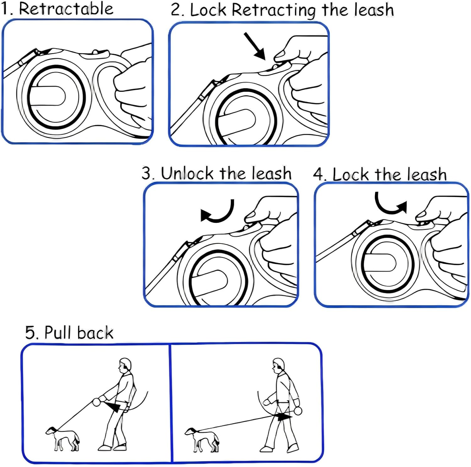 About this item Quality Materials and Smooth Performance: This dog leash is crafted from a non-toxic plastic casing, environmentally friendly nylon rope, and a durable metal lock. It operates smoothly and quietly, designed to minimize disturbance. Safe and Dependable Design:16 ft tape dog leash retractable With Easy-Adjust Retraction; 360 Degree Tangle-Free Inlet. It prevents hand injuries when your dog runs suddenly, Just keep a reasonable distance to avoid leash tangles for added safety. Sturdy Rope and Comfortable Grip: Control your retractable dog leash effortlessly with a semi-automatic stop mechanism. Features multi-mode button control (free/lock/retract) to instantly prevent large dogs that pull from lunging. Ideal for safe walks and training dogs that pull, ensuring a secure grip even for heavy duty breeds. Wide Use: This retractable leash specially designed for canines, is perfect for walks, jogs, runs, camping, hiking, or strolling in the backyard. Suitable for all dogs and cats under 44 lbs, it functions as both a retractable dog leash for medium dogs and a retractable dog leash for small dogs. Safe Braking: Do not fully release the leash when the dog rush forward, the strong impact will damage thespring and internal accessories. It needs to be locked in time. Contact us any time with any reasons. › See more product details