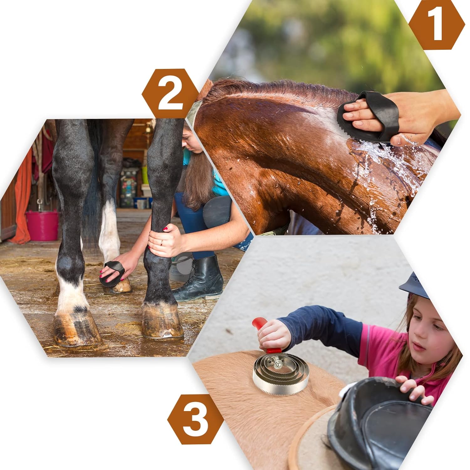Features: The rubber curry comb and stainless steel curry comb are ideal for bathing and massaging horses, and the convex and concave texture relaxes the horse's body muscles. The multifunctional shedding blade can make your horse's hair healthier and more beautiful, a handy tool set for everyday grooming and shedding for cattle, goats, horses, and even dogs. Specifications: Material: stainless steel and rubber Colors: red and black Sizes: Stainless steel curry comb: 22.5 x 10 x 2.3 cm Rubber curry comb: 15 x 10 x 5 cm Package includes: 1 x Reversible stainless steel curry comb 1 x Large rubber curry comb Notes: Manual measurement, please allow slight errors in size. The color may exist a slight difference due to different screen displays.