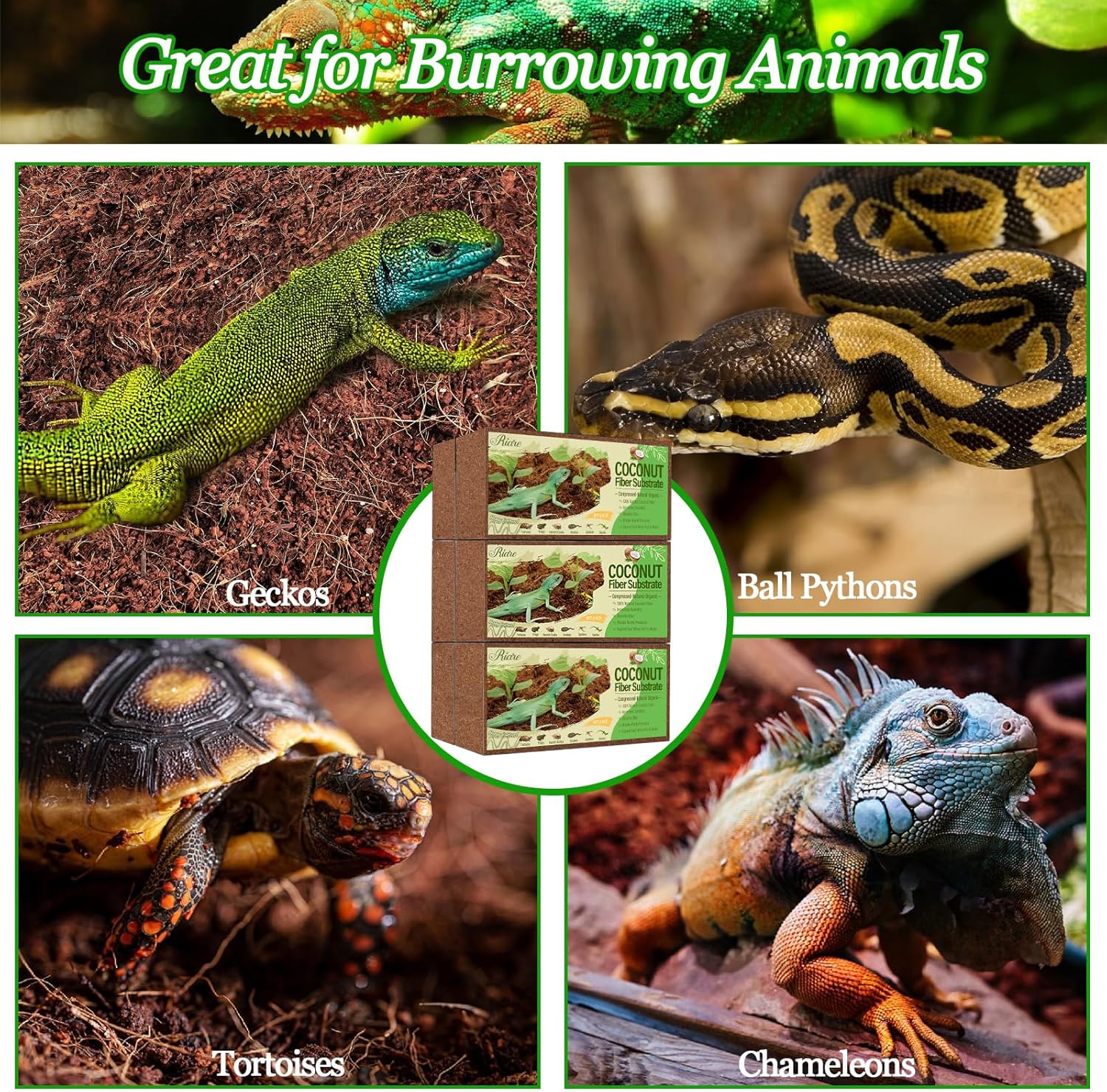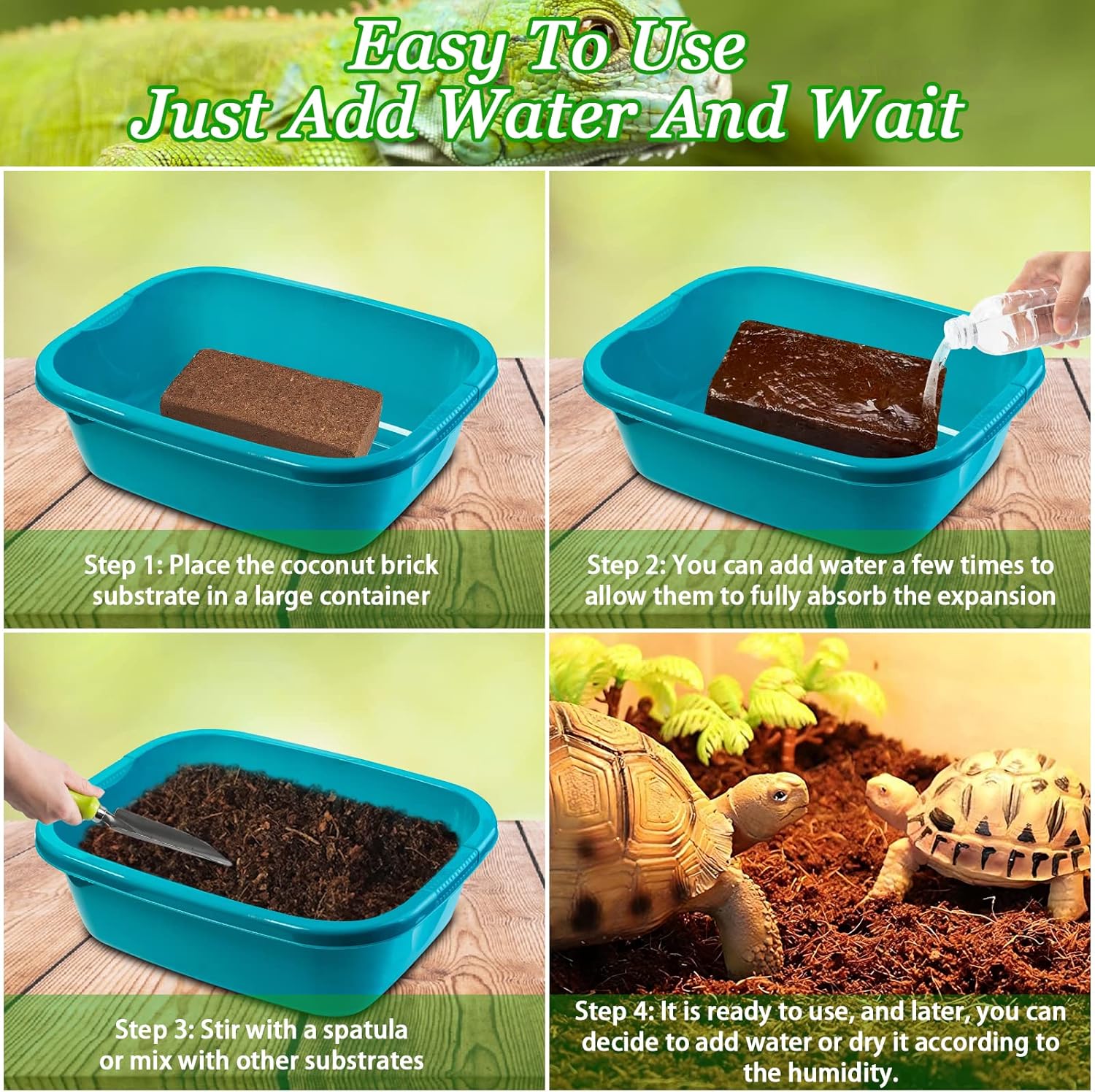 Natural and Organic Material: You will receive 6 pcs coconut fibre bricks, each size 7.8 x 3.9 x 1.97 inch, which are made from natural coconut fibre that is odorless, retains humidity well and also enhances the temperature of the aquarium while stimulating the natural digging and burrowing behavior of small animals, providing a cleaner and healthier living for reptiles, amphibians and invertebrates Odor and Waste Absorber: Natural terrarium substrate breaks down liquids, water and waste sufficiently, while absorbing odors, making indoor tanks smell fresher and look cleaner, far better than wood shavings, stone or other inferior alternatives, helping to maintain a long-lasting and healthy environment Degradable and Compostable: Our coconut fibre substrate is a natural, organic and non-polluting material that is biodegradable and compostable, you can completely dispose of it outside in your garden area or backyard and also use it as a fertiliser for flowers, potted plants and other plants to reuse resources Easy to Use and Store: These coco bricks are compressed and dense. Just soak the brick in water, coco coir will instantly and easily soak up water and expand into a clean, fluffy substrate. Our Coconut husk fiber is a great substrate for any reptile or amphibian that needs a substrate / bedding that can retain moisture Universal Aquarium Substrate: Pure natural terrarium bedding is very soft and comfortable with good breathability, even your pet can breathe freely in the coconut soil. Suitable for frogs, hermit crabs, snakes, turtles, frogs, lizards, chameleons, geckos, salamander,snails and orb pythons, and spiders and other burrowing animals, you can use it to keep your pets with confidence › See more product details