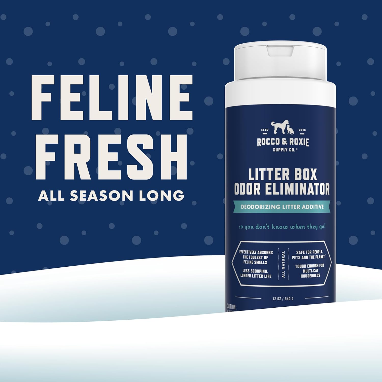 About this item Cat Litter Deodorizer That Effectively Absorbs Even The Strongest Litter Box Smells: Our proprietary blend of essential oils neutralizes odors at a molecular level, keeping your litter box smelling fresher, longer Less scooping, longer litter life: This cat litter box deodorizer mixes easily with all types of litter, extending litter life by wicking away moisture; go longer between cleanings and save more money because you need less litter Safe for people, pets and the planet: Non toxic, 100% plant-based cat litter box odor control; This cat litter box odor eliminator is made from all-natural, highly absorbent corncob granules that effectively wick moisture from urine and feces Deodorizes other surfaces too: Rocco & Roxie cat litter odor eliminator is great for trash compactors, garbage cans, cat kennels and animal carriers Buy With Confidence: You want the best for your best friend; we do, too; if you are not satisfied with the performance of this cat deodorizer for litter box, contact us; We are determined to make it right › See more product details