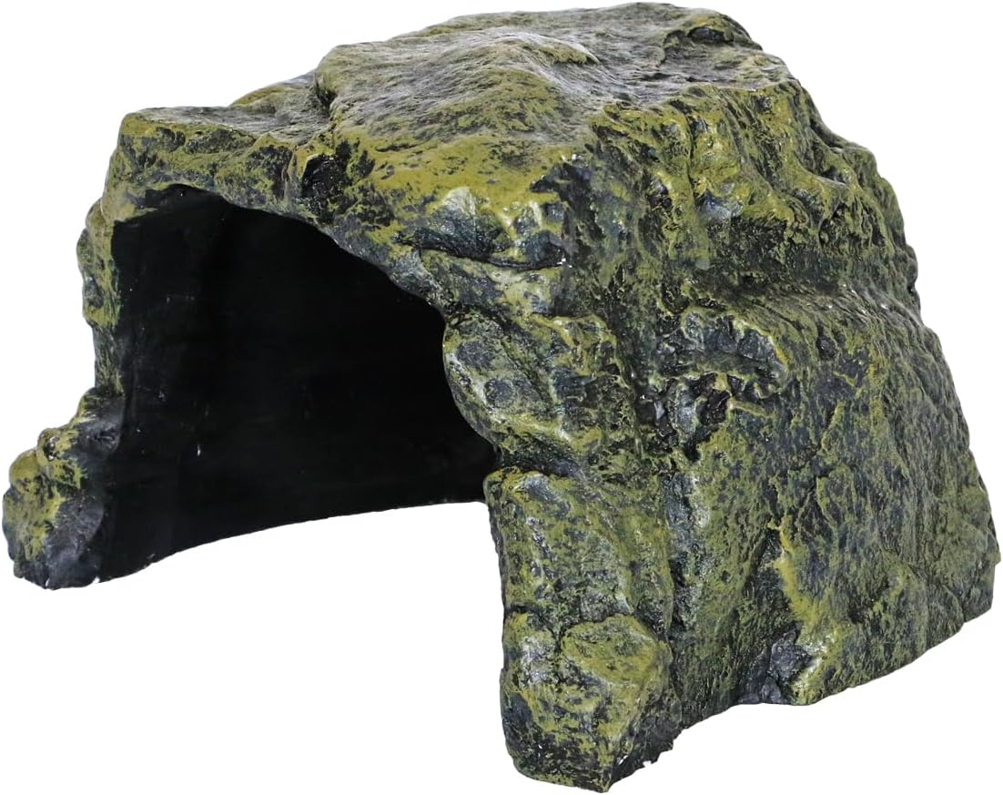 About this item PERFECTLY DESIGNED ROCK CAVE HABITAT: It's not only an excellent habitat, but also a great decoration. Suitable for all types of tortoises, lizards, snakes, bearded dragon, toads, amphibians, spiders, scorpions, frogs, tree frogs, small reptiles, newts, salamanders, crayfish, axolotls, chameleons, geckos or small animals, and more! MADE OF PREMIUM RESIN: Made of the finest premium resin. It's safe and non-toxic for your precious pets. REALISTIC ROCK TEXTURE: Natural colors and carefully crafted texture creates realistic rock landscapes. It can make pets feel relaxed and reduce stress and feel like they are living in a natural environment. PLATFORM FOR BASKING: The shape of the hide offers a perfect resting spot on the top of the hide for whenever your pet wants to bask or just chill out. This hide is perfect for climbing and hanging out and will be part of your pets daily life. HEAVY AND STURDY MATERIAL: This hide is weighted, hard, solid and sturdy making the foundation very stable and not easily tipped over by larger reptiles, adding to the sense of security for your pets as it will not move or float when they move. SMOOTH INTERIOR AND EDGES: The reptile hiding inside is polished,very smooth, not sharp, reptiles stay inside will not be stabbed, to ensure that the reptiles free and safe access to activities. LARGE SIZE: Overall = 7.5” (W) x 6.5” (D) x 4.3” (H). It is very large and makes pets feel very comfortable. WARRANTY: All of our products are protected by The MOBELL One-Year ‘Worry Free Warranty’. If you have any questions, please contact us. We love hearing from you. › See more product details