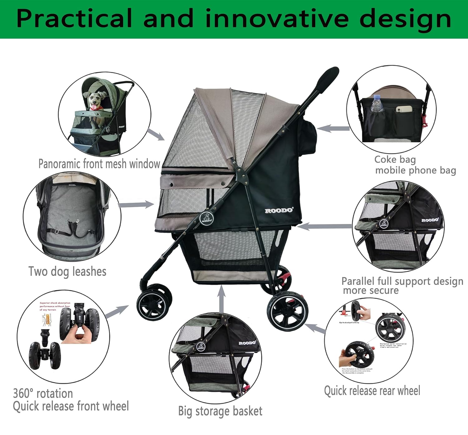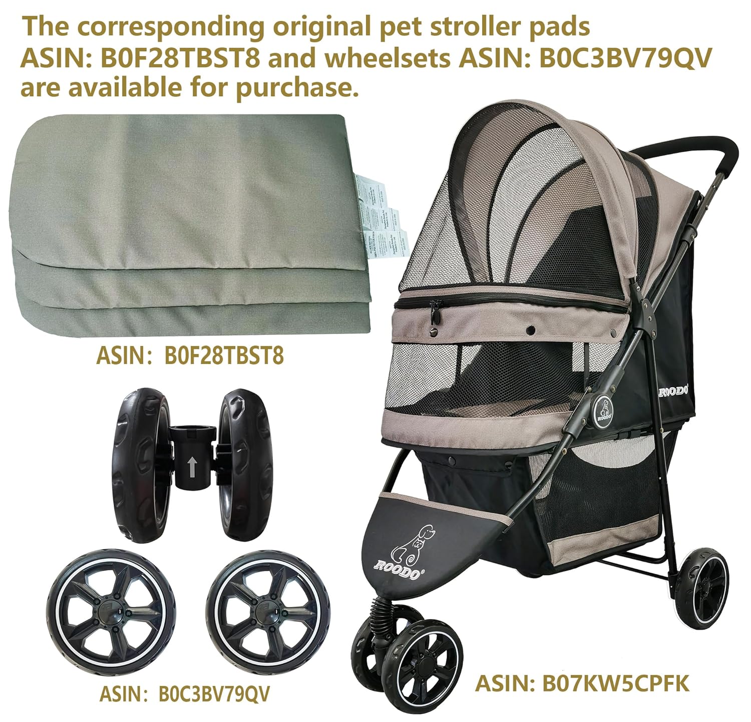 About this item Polyester fibre ROODO Escort 3 Wheel Pet Stroller,have been upgraded front wheel and rear wheels can be quickly installed and removed without tools,The installation of the front and rear wheels will be easier and faster。 Expanded size: 33*18.5*38inch / 84*47*96CM Folded size: 18.5*6.5*33inch / 47*16*84CM. Package size: 15*5.5*25inch / 38*14*64CM Product weight: 4.8KG / 10.8LB › See more product details