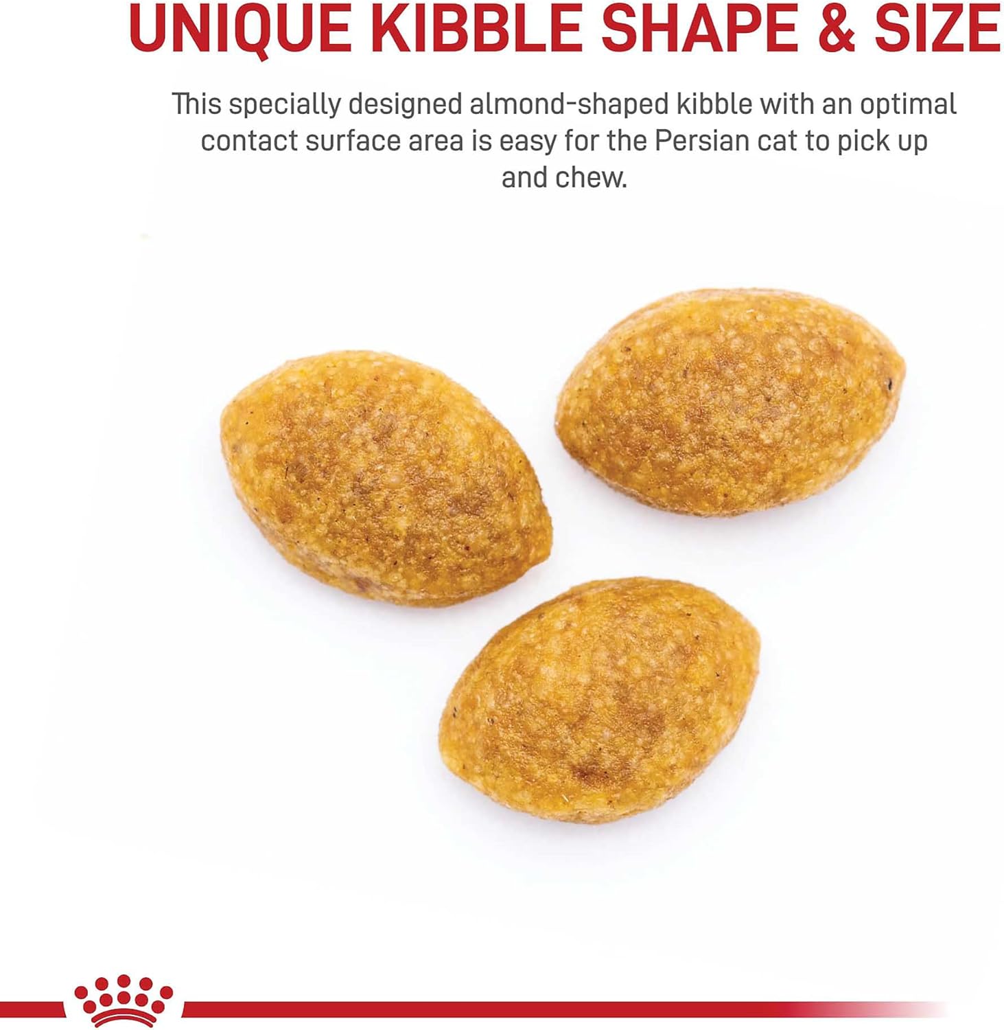 Provide a nutritious and healthy diet for your adult Persian cat with Royal Canin(R) Feline Breed Nutrition Persian Dry Cat Food. Royal Canin Adult Persian Cat Dry Food formula is tailor-made nutrition created just for your Persian purebred. The almond-shaped specialized cat kibble is designed for the unique way Persian cats use the underside of their tongue to eat, allowing cats to easily pick up and chew the kibble. With an exclusive combination of essential nutrients like amino acids, this adult cat food helps promote healthy skin and coat, while a complex blend of fibers helps eliminate ingested hair and support hairball management. Mix in or complement this Royal Canin Persian dry cat food with Royal Canin Adult Persian Loaf in Sauce Wet Cat Food for a texture that's sure to please. Support your Persian's overall wellness with each serving of Royal Canin Feline Breed Nutrition Persian Cat Food Dry Formula.