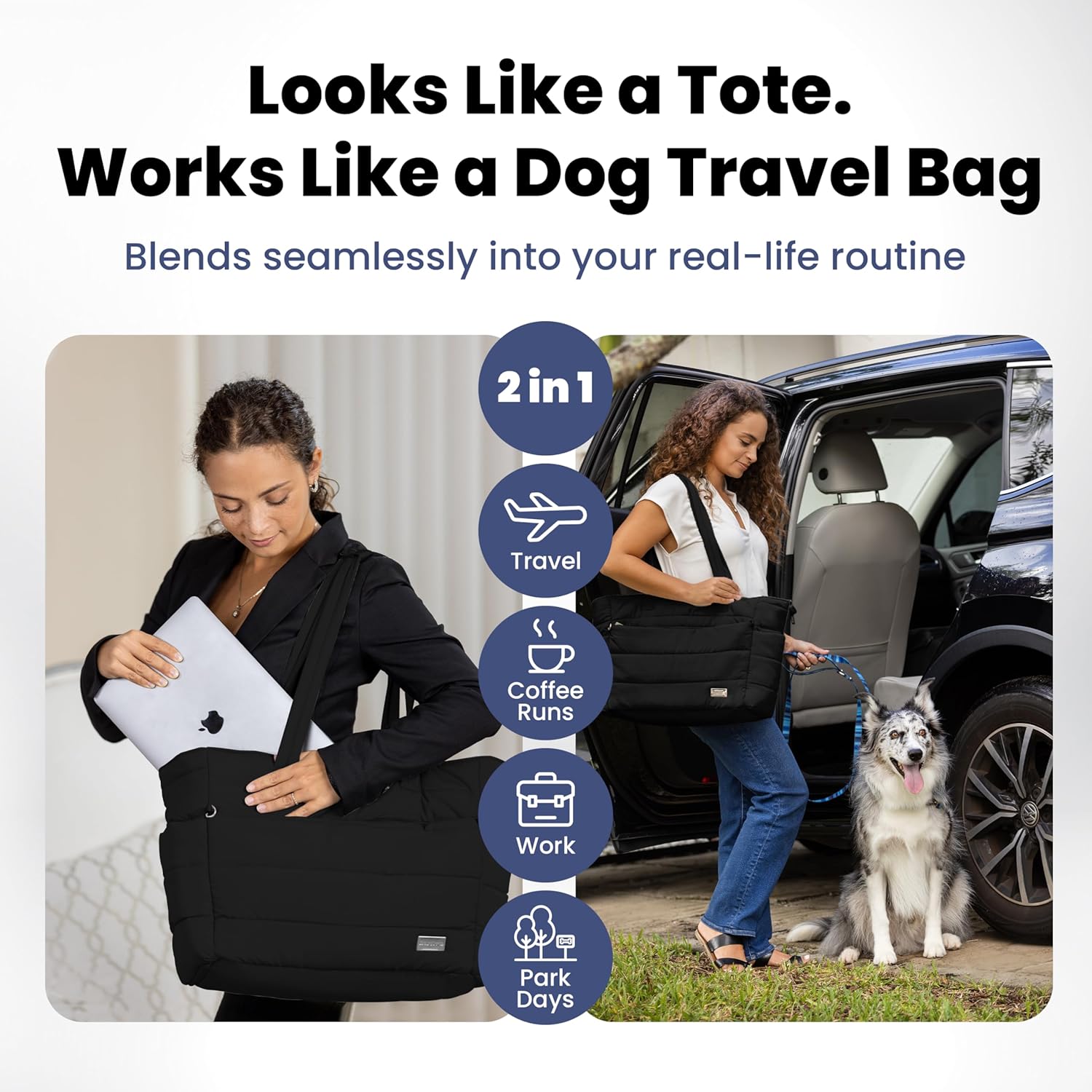 • TRAVEL-READY DOG TOTE FOR ESSENTIALS – Lightweight and durable puffer bag with compartments, adjustable dividers, zip and mesh pockets, and built-in space for bowls and food containers. Everything has a place so you can grab it quickly.