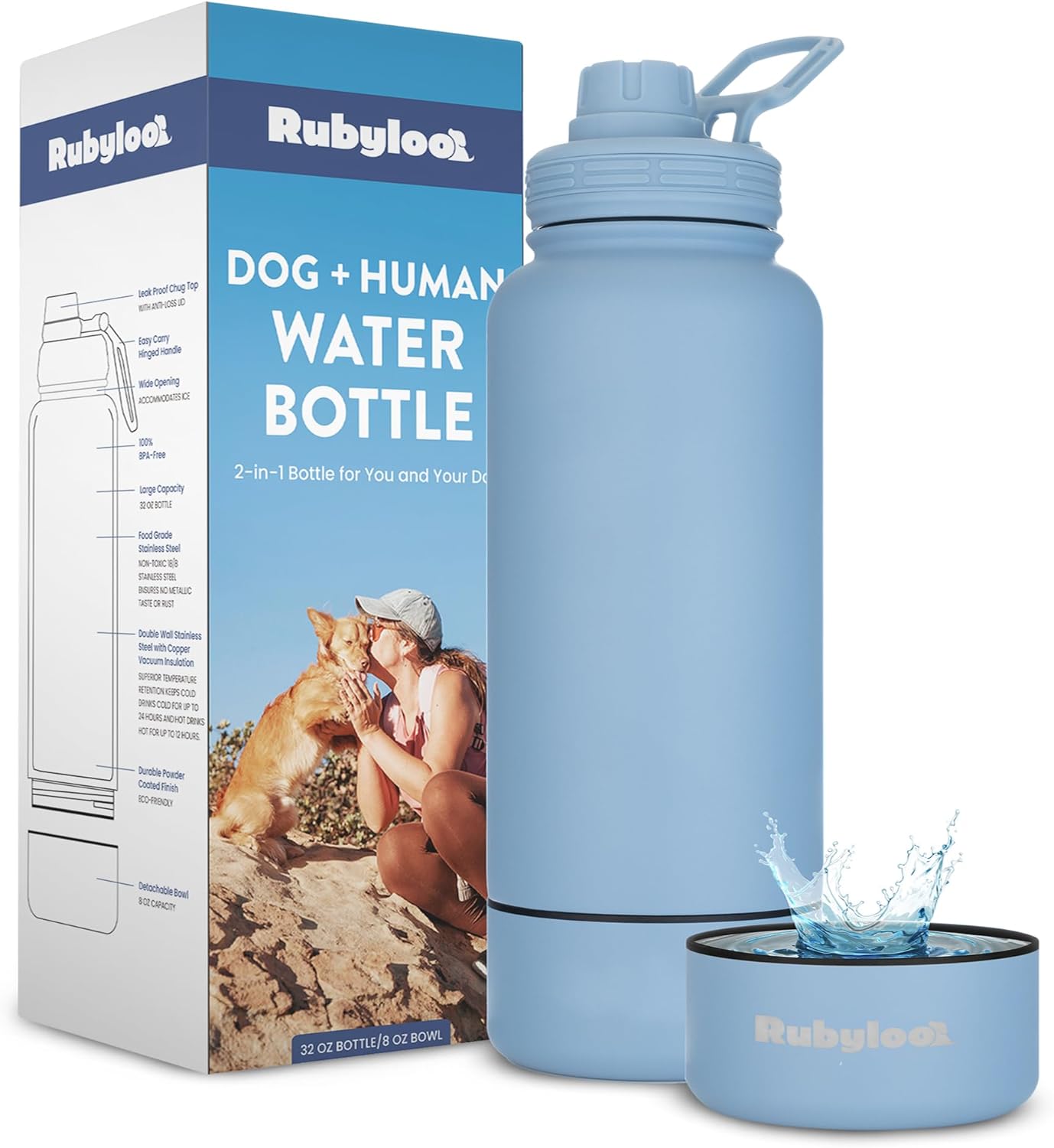 • HYDRATE YOU AND YOUR PUP – 32 oz insulated stainless steel water bottle keeps drinks cold for hours. Twist-off 8 oz base doubles as a dog bowl or stash spot for treats, poop bags, or keys. Leakproof, dishwasher safe, and fits most car cup holders.