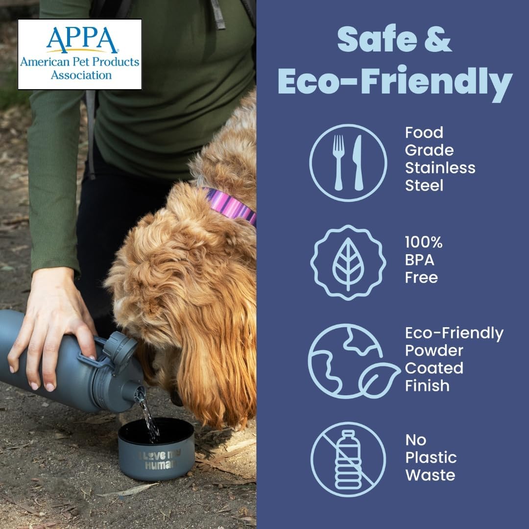 Meet the Rubyloo Dog Travel Bundle, a two-piece adventure set designed for dog moms and pet parents who love exploring with their pups. This bundle combines our best-selling Puffer Dog Tote with food storage and our 32 oz Insulated Dog Water Bottle with detachable bowl to create the ultimate on-the-go solution. The Puffer Dog Tote is lightweight, durable, and built for organization. Adjustable dividers, mesh and zip pockets, and compartments for bowls and food containers keep all your dog essentials in one place. The bag is easy to carry, wipes clean, and is gift-ready for dog lovers who want function and style. The 32 oz Water Bottle keeps both you and your pup hydrated. Double-wall insulation keeps drinks cold for hours, and the twist-off base turns into an 8 oz dog bowl or storage spot for treats and poop bags. Leakproof and dishwasher safe, this bottle fits most car cup holders for convenience on walks, hikes, or road trips. Together, the Puffer Tote and Insulated Bottle make every outing simpler, cleaner, and more fun. From daily walks to weekend adventures, your essentials stay organized and your pup stays hydrated. Thoughtful, practical, and built to last, this bundle is the perfect gift for dog moms, rescue parents, or any dog lover who treats their pup like family. Designed by a woman-owned, dog-obsessed US small business, Rubyloo ensures every purchase supports our Every Dog Should Have a Home initiative. Adventure ready. Organized. Hydrated. Tail wag approved.