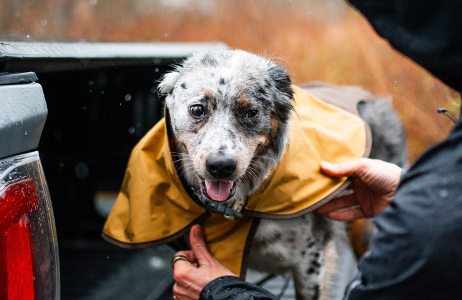 About this item WEATHERPROOF SHELL. Lightweight, seam-sealed 70D/210D ripstop fabric blocks rain and wind to keep dogs dry and comfortable in unpredictable conditions. FIND YOUR DOG’S PERFECT FIT. Check out our sizing chart to learn how to measure your dog for the best fit because comfort and coverage start with the right size. EXTENDED STAY-PUT COVERAGE. Oversized storm collar and longer vest-style cut add protection over hips and thighs, while adjustable leg loops help keep the jacket in place during gusty weather. QUICK-CONNECT LEASH PORTAL. Back leash portal allows the dog rain jacket to be worn over most harnesses—without sacrificing coverage or control. ADVENTURE-READY FIT. Side-release buckles make it easy to slip on and off—even for wiggly pups. Hem cinch customizes the fit for active movement. › See more product details