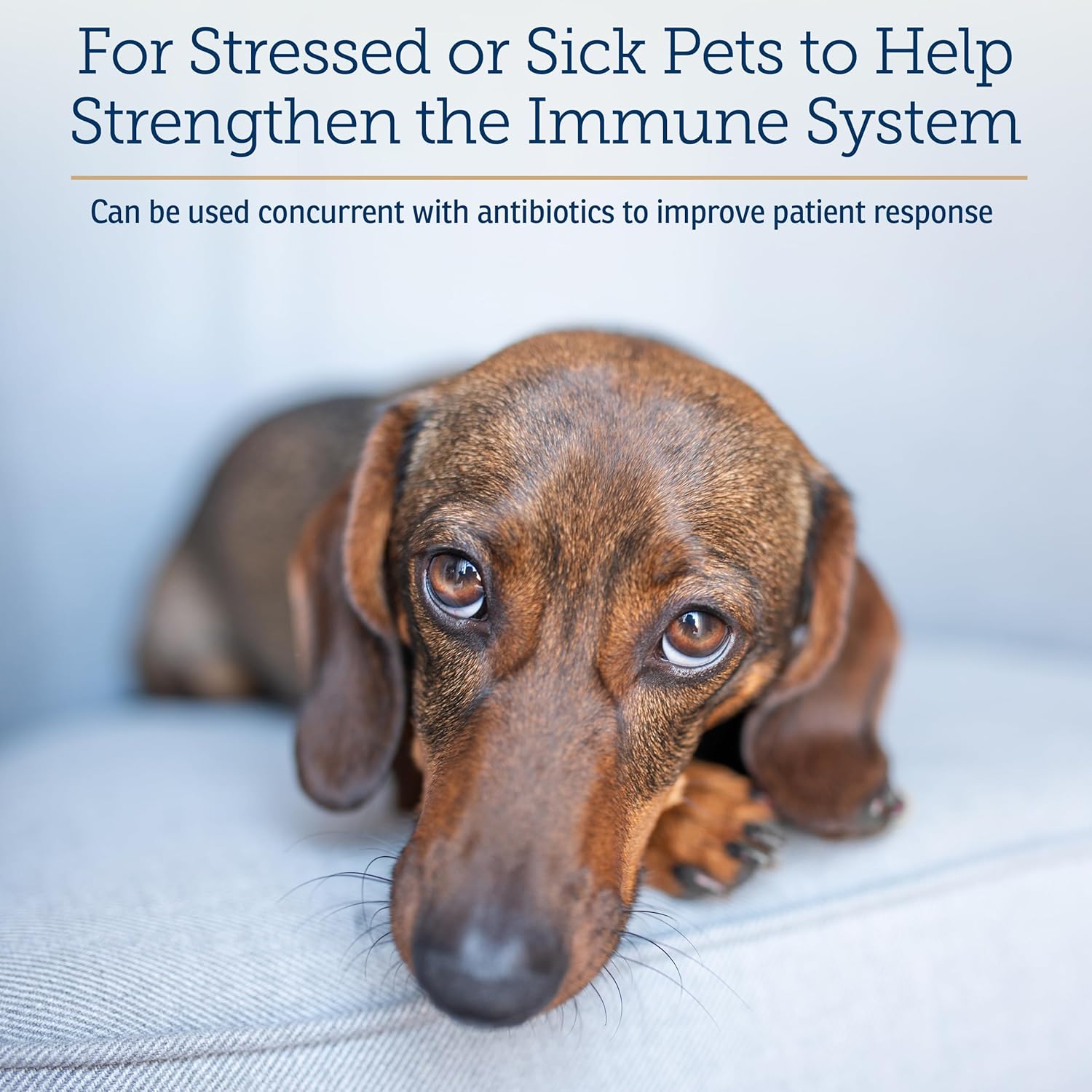 Rx Vitamins Liquid Immuno is a powerful dog and cat immune support supplement formulated for all ages, including seniors, puppies and kittens. This advanced liquid supplement contains L Lysine cats and dogs, a crucial amino acid known for its immune-boosting properties. It also includes larch arabinogalactan and reishi mushroom extract, natural ingredients that support overall immune health and provide antioxidant benefits. Liquid Immuno helps maintain optimal cat and dog health, offering support for respiratory issues, cat allergy relief for cats and dogs, and cat congestion, making it an essential addition to your pet’s daily nutritional regimen. Designed for easy administration, this highly palatable liquid comes in delicious chicken or bacon flavors, ensuring even the pickiest pets receive their daily dose. It's an ideal cat and dog nutritional supplement, especially those with weakened immune systems, allergies, or cold symptoms. Liquid Immuno also supports eye health, nasal relief, and respiratory function, making it a comprehensive health solution. Suitable as a daily immune guard, it acts as a decongestant and immune booster, especially beneficial during seasonal changes. Whether you're looking for immune system support for dogs, cat vitamins for indoor cats, or a lysine supplement for felines, Liquid Immuno is a versatile and effective choice to promote vitality and well-being in your pets.