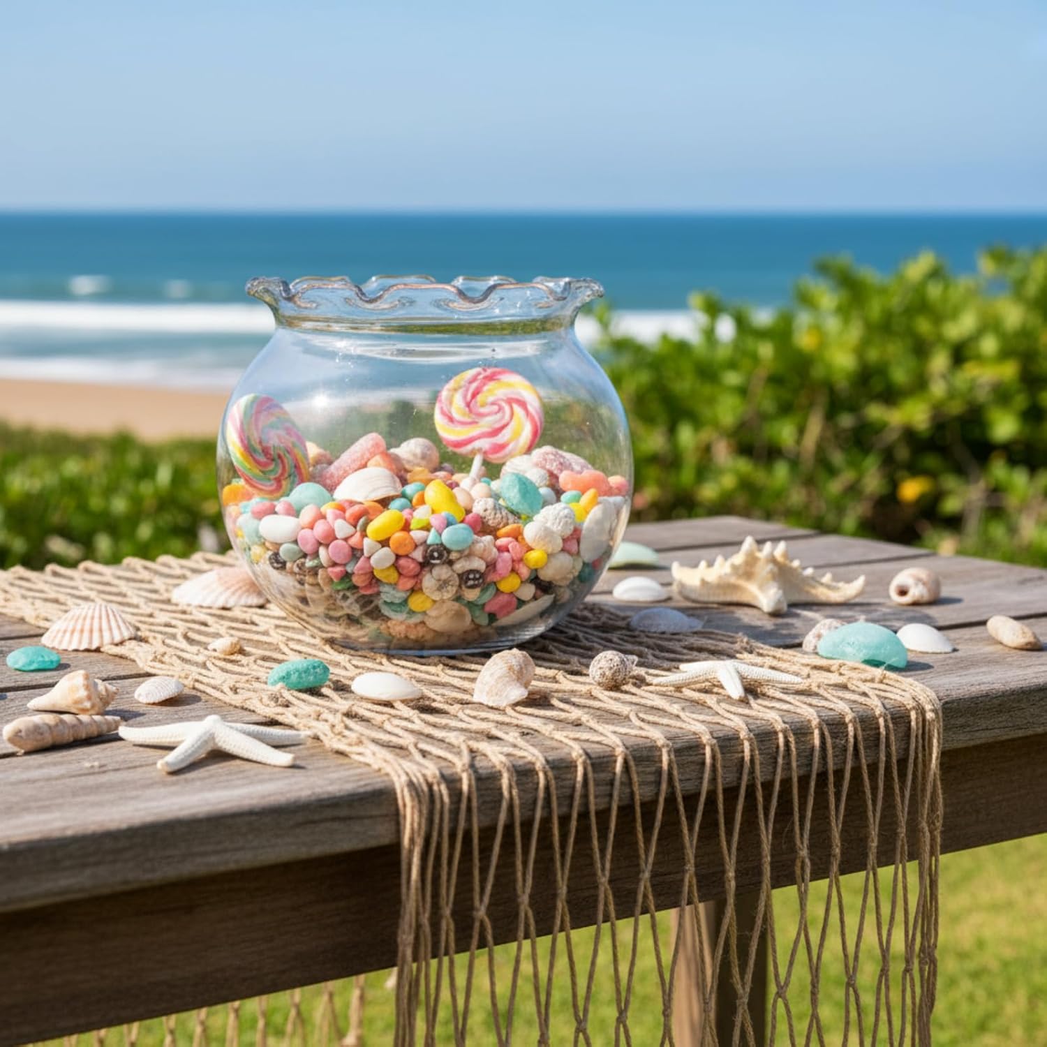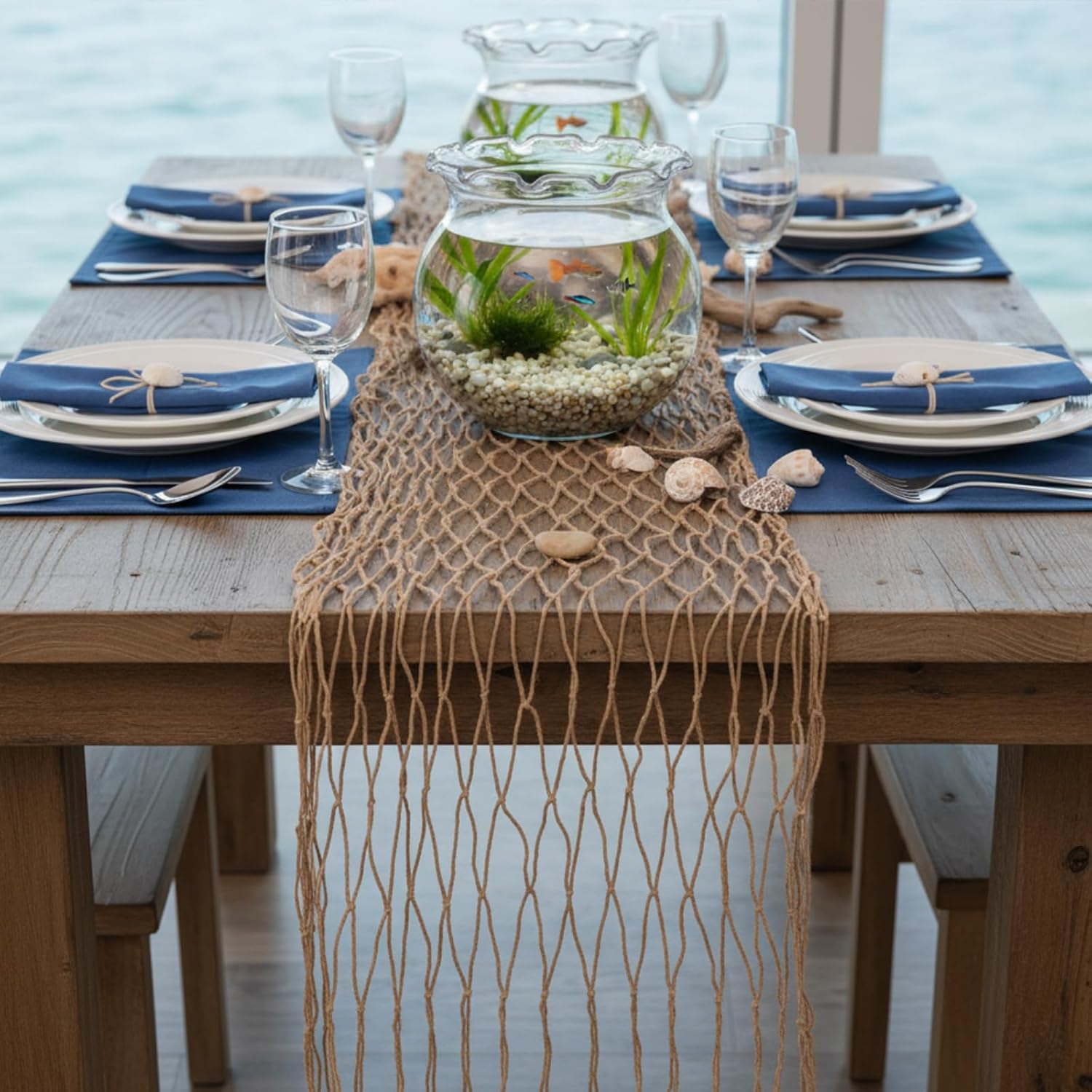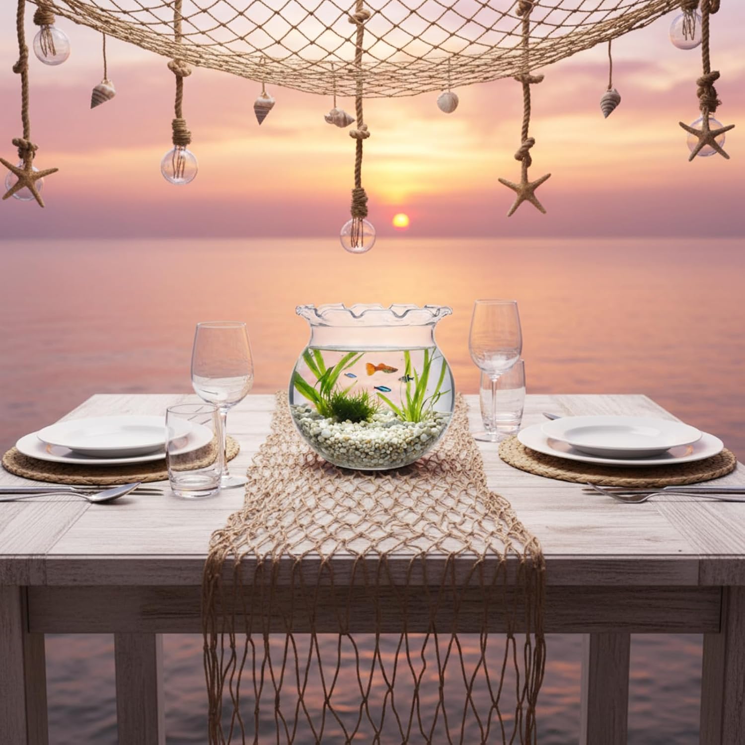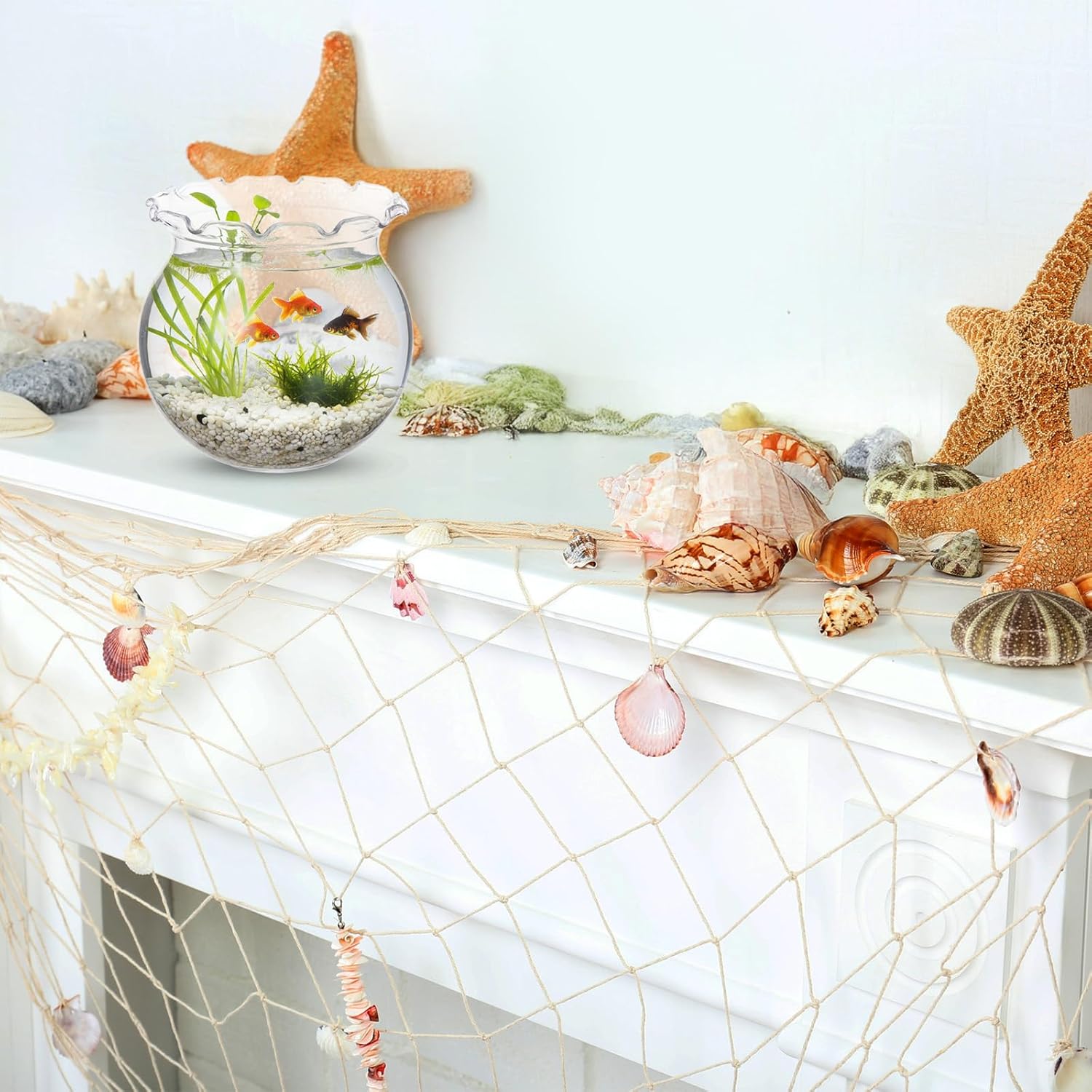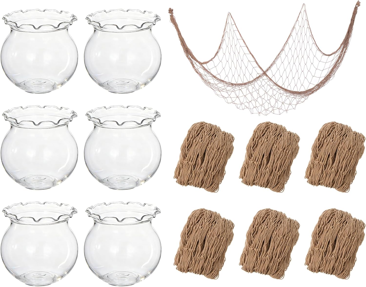 Features: Beautiful decor: This decorative fishing net set is the good choice for many beach-themed setting, whether indoors or outdoors, to create the Mediterranean oceanic style you desire. Alternatively, drape a fishing net over your dining table, place small fish bowls filled with decorative items, and create a nautical-themed dining experience. Match as you like: In addition to the decorative fishing net, you can also place some small pebbles and artificial grass in the fish tank, and decorate the fish tank with a natural atmosphere before putting the fish in. Specifications: Material: Fish tank: plastic Fishing net: cotton Color: Fish tank: clear Fishing net: coffee brown Size: Fish tank: about 4.33 x 4.25 inches/ 11 x 10.8 cm Fishing net: about 3.3 x 6.6 ft/ 1 x 2 M Package includes: 6 x Fish tank 6 x Fishing net Notes: Manual measurement, please allow slight errors on size. The color may exist a slight difference due to different screen displays