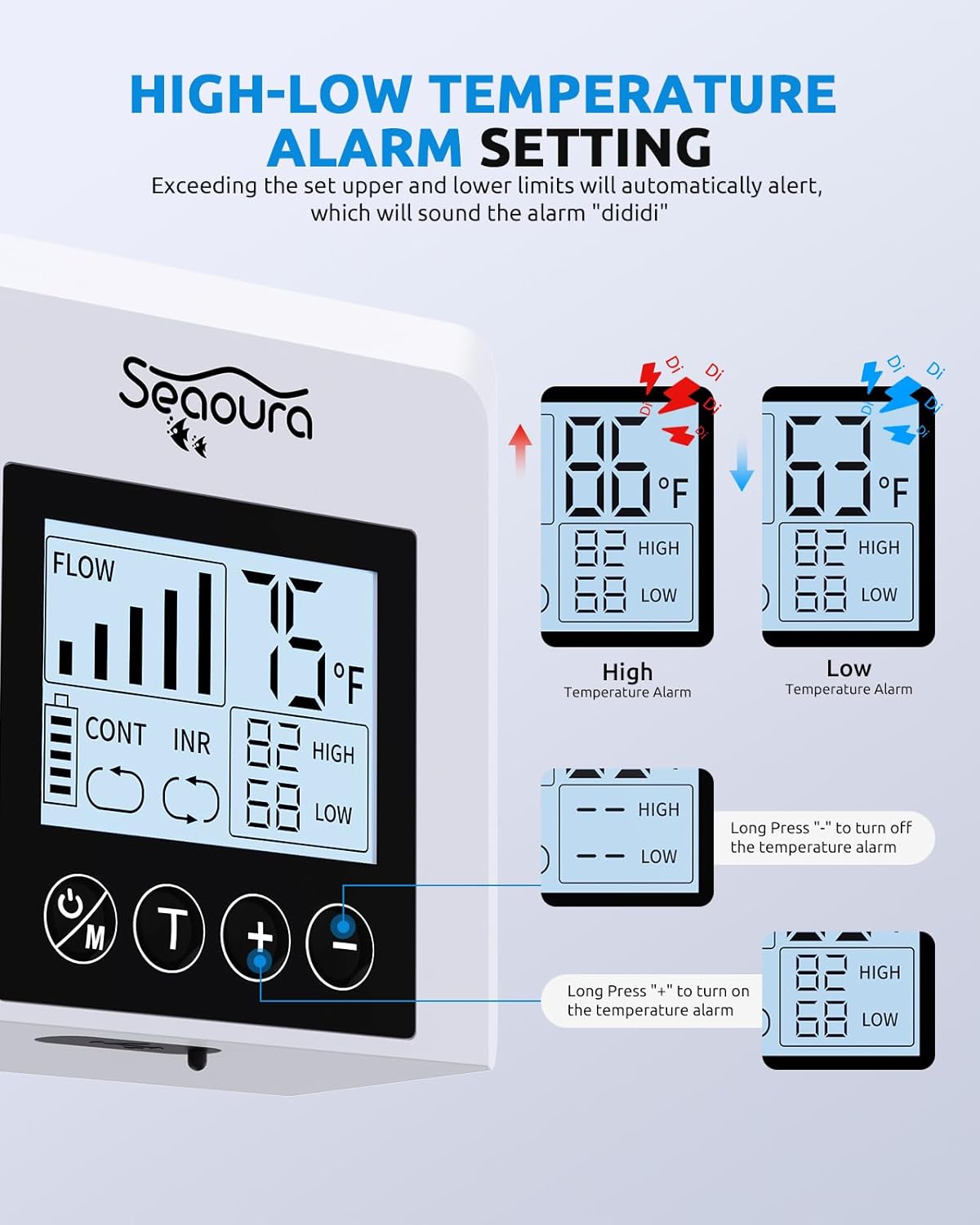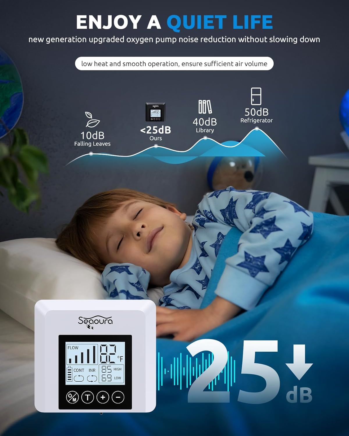 • 3-in-1 Accurate Temperature Monitoring, Dual Outlet & 5 Speeds Mode, Temperature Anomaly Warning, 25dB Ultra Quiet Bait Aerator Energy Saving