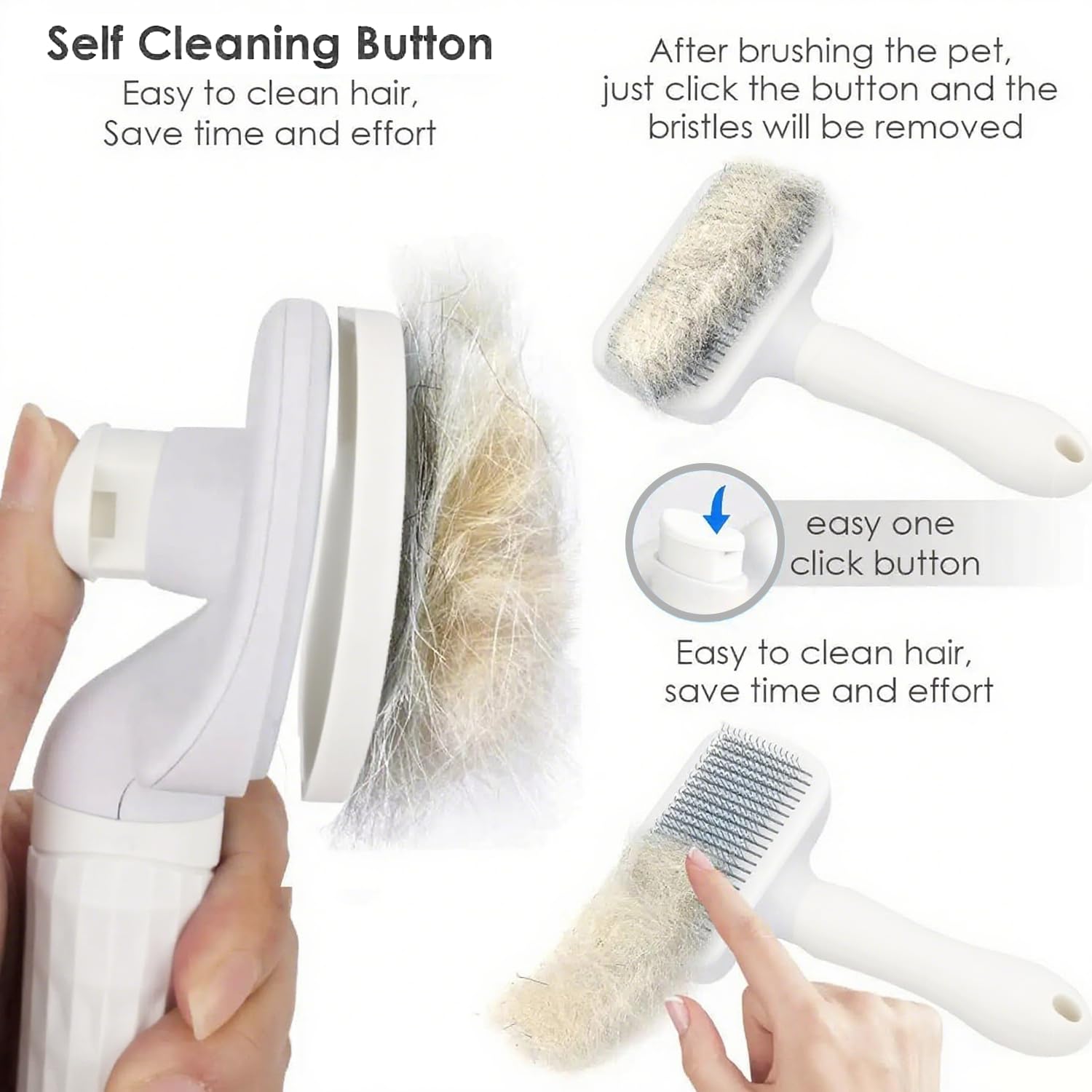Do you have these issues? Have you tried a variety of pet brushes, and nothing seems to work? Is the hair on your pet falling out too much? Is there dog hair blowing everywhere? You can eliminate those annoyances with the help of this slicker dog brush, so don't worry. What makes this dog brush different from others: Picking hair from the brush when using a different pet brush could irritate you quickly. It is entirely avoidable with this Self Cleaning Dematting Comb. While still collecting a lot of lost hair, this brush is X times more comfy for your pets. Cleaning it is really easy—press the button and remove the hair pad, and it doesn't fill up until almost the entire brushing session is over.