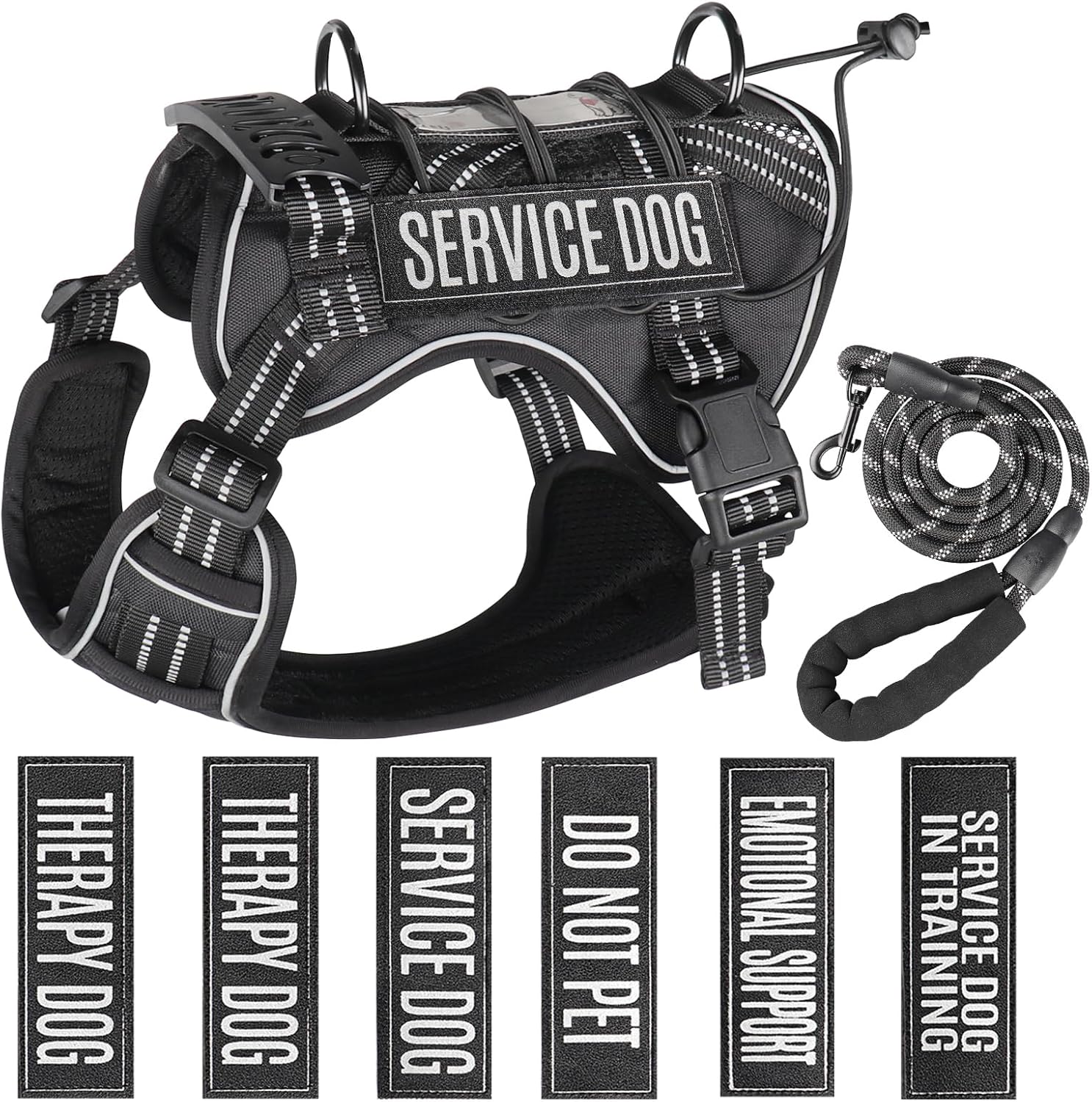 About this item 【Sizing Guide – Medium (Tactical)】 Medium Size Fits: Chest Girth: 17 - 31 inches (measure widest part behind front legs) Neck Girth: 17 - 22 inches (midway up neck, snug not tight) Use a soft tape, leave 1–2 fingers of space. Skip weight-only sizing—check size chart. Size up if between measurements.We hope you have a pleasant shopping experience. 【Practical Tactical Dog Gear Set】 Equip your medium-sized dog with essential gear, including a tactical harness *1, leash*1, ID slot *1, and 12PCS reflective patches Suitable for daily walks, public outings, and urban activities. 【Molle System – Gear Up】 Dual-side Molle strips let your dog carry essentials (service, hunting, outdoor use). Compatible with most Molle pouches (not included) – attach bowls, bottles, toys, or gear easily! 【Enhanced Nighttime Safety】 This full-body harness is equipped with super bright reflective webbing throughout, delivering high visibility to keep your pup safe during early morning, evening, and nighttime walks. 【Anti-Lost ID Tag – Keep Your Furry Friend Close】 Add your pup’s name and your contact info to the included ID tag—because every adventure is better when you’re prepared. If your furry companion ever wanders, kind strangers can quickly reach you, helping bring your beloved dog safely back home. › See more product details