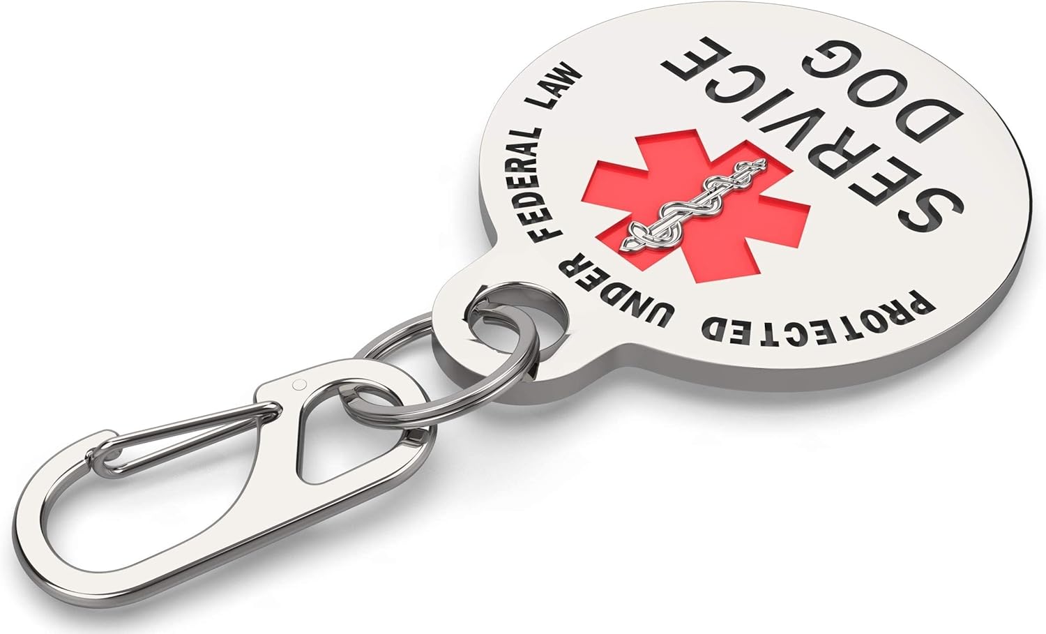 About this item ⭐ 𝗘𝗤𝗨𝗜𝗣 𝗬𝗢𝗨𝗥𝗦𝗘𝗟𝗙 𝗪𝗜𝗧𝗛 𝗔 𝗣𝗥𝗘𝗠𝗜𝗨𝗠 𝗗𝗢𝗚 𝗜𝗗 made of heavy-duty materials, with bright, easily recognizable enamel lettering and graphics on both sides, which will make your out and about with your service dog easier. Additionally, the tags feature smooth, polished edges to avoid any irritation or discomfort for your dog. You not only invest in a product that stands the test of time but also ensure that your service dog is immediately recognizable as a working animal. ⭐【𝗦𝗔𝗩𝗘 𝗧𝗜𝗠𝗘 𝗢𝗡 𝗧𝗜𝗥𝗜𝗡𝗚 𝗘𝗫𝗣𝗟𝗔𝗡𝗔𝗧𝗜𝗢𝗡𝗦】: This personalized Federal Protection animal name tag will help you enter with your Service support dog hotels, restaurants, hospitals, shopping centers and airplanes as per ADA laws. Our tags are designed with bold, easy-to-read lettering that instantly communicates your dog’s status as a service animal. This visibility is crucial in public spaces where misunderstandings can occur. ⭐【𝗔𝗗𝗗 𝗦𝗧𝗬𝗟𝗘 𝗧𝗢 𝗬𝗢𝗨𝗥 𝗣𝗘𝗧'𝗦 𝗟𝗢𝗢𝗞𝗦】: Sleek and elegant, with the vibrant Red Medical Alert symbol in the center, this large 1.25-inch PSTD dog ID will make your large, medium or small breed dog look adorable. Our tags come in a variety of designs and finishes, allowing you to choose an option that enhances your pet’s overall look. Whether you prefer a classic polished stainless steel finish, a vibrant color, or a custom engraved design. ⭐【𝗕𝗨𝗬 𝗜𝗧 𝗢𝗡𝗖𝗘 & 𝗨𝗦𝗘 𝗜𝗧 𝗙𝗢𝗥𝗘𝗩𝗘𝗥】: The high-end deep engraving guarantees your seizure alert dog tag will not fade like many ESA dog or therapy cat tags. The strong metal lobster clasp attaches it to your pet's vest harness or leash. Our tags are built to endure the rigors of daily use, ensuring that they remain functional they are exposed to. The superior craftsmanship and durable materials used in our tags guarantee that they won’t break, bend, or deteriorate over time. ⭐【𝗩𝗘𝗧𝗘𝗥𝗔𝗡 𝗮𝗻𝗱 𝗙𝗮𝗺𝗶𝗹𝘆 𝗢𝘄𝗻𝗲𝗱 𝗦𝗺𝗮𝗹𝗹 𝗕𝘂𝘀𝗶𝗻𝗲𝘀𝘀】: Buy with confidence from an Amazon Brand Registered Company. Offer this elite seizure dog tag as a thoughtful gift to a service dog parent. Our service dog tags are produced by a team committed to quality and customer satisfaction, drawing on the discipline and precision honed through military service. Supporting a veteran and family-owned small business means investing in products made with care and dedication. › See more product details