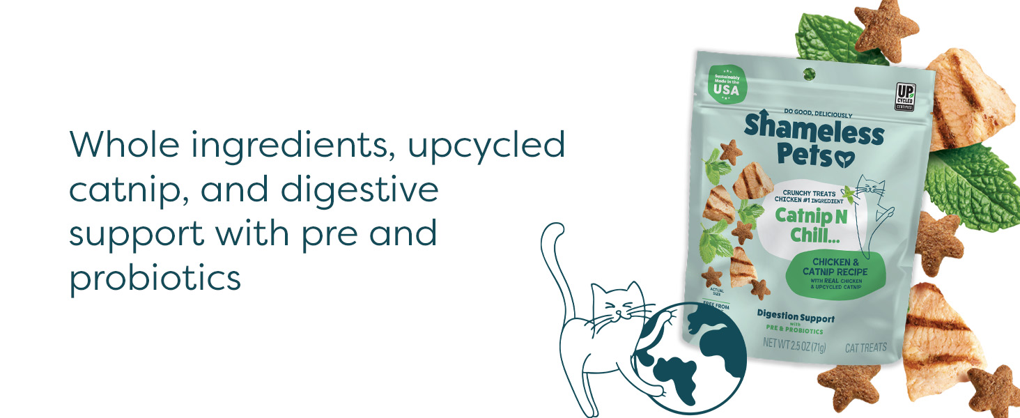 About this item Cat Treats for Digestive, Skin, & Coat Support: Spoil your kitty with all the options (especially if they're prone to jumping on the countertops and stealing the treats). These crunchy, star-shaped, bite-sized treats are made with real meat and upcycled sweet potatoes. This variety pack contains 3 flavors: Catnip N Chill, Yam Good Salmon, and More Lobster, Cheese. Real Meat & Whole Ingredients: Cats really want real meat. That is why whether it’s chicken, tuna, or salmon, fresh meat is the first ingredient! These low-calorie cat treats (only 1.5 calories per treat) are free from corn and soy while still loaded with wholesome, locally-sourced ingredients. Cats of all ages, sizes, and breeds can enjoy! Easy on Cat’s Stomach & Digestive Systems: Each Shameless Pets treat is crafted with a specific health benefit in mind, so your pets can get the nutrition they need, even from treat time. These treats boost digestive, skin, and coat support! Upcycled With Care: We work with farmers to rescue their imperfect sweet potatoes that have all the same healthy nutrients. This means every bag of our treats decreases food waste while saving valuable resources. Proudly Made in the USA: All of our creative, delicious pet treats are made here in the USA by nutritionists using the finest, locally-sourced ingredients and sustainable practices. Plus, there’s a health benefit for every flavor – because after all, a healthy pet is a happy pet! › See more product details