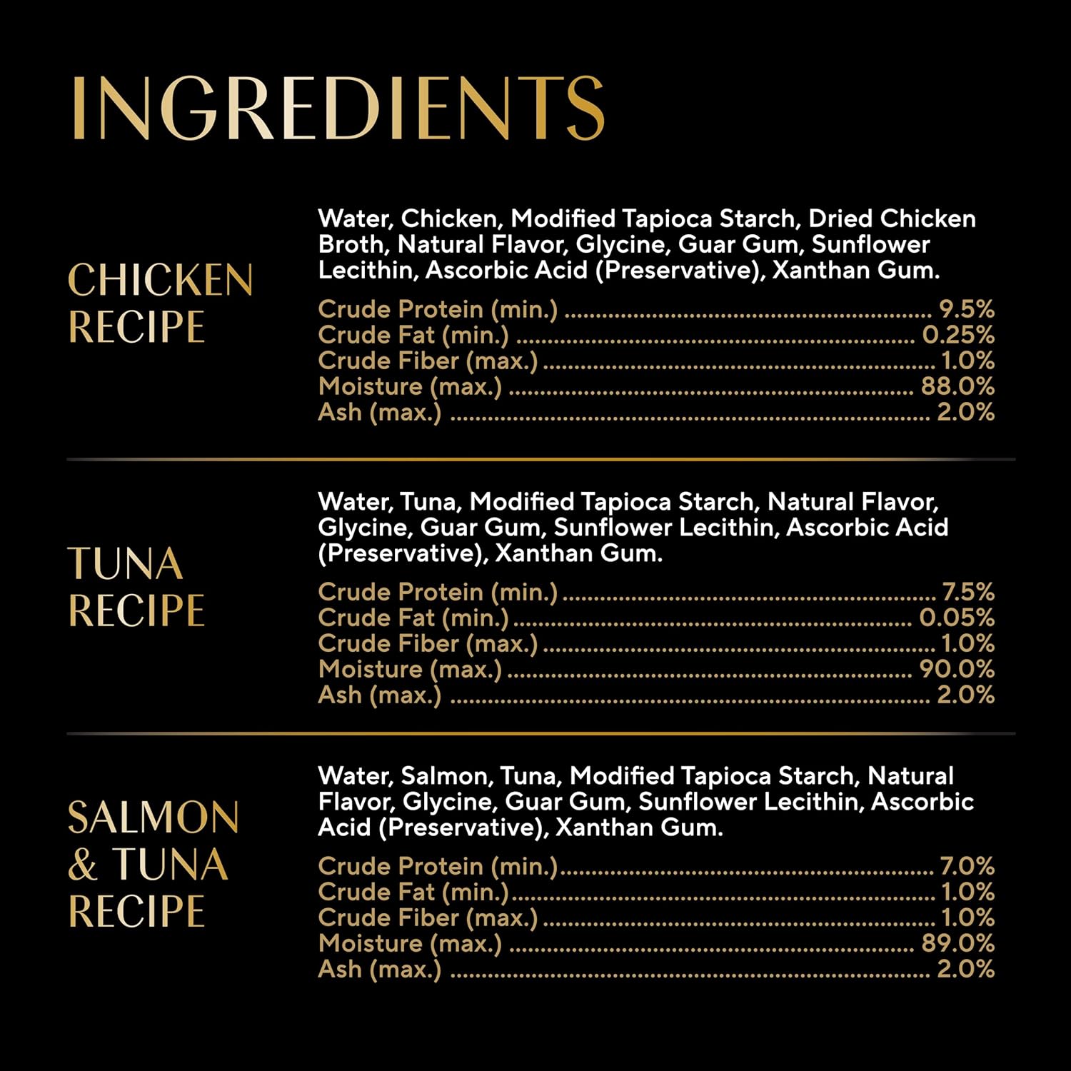- Flavor: Chicken, Tuna, & Salmon