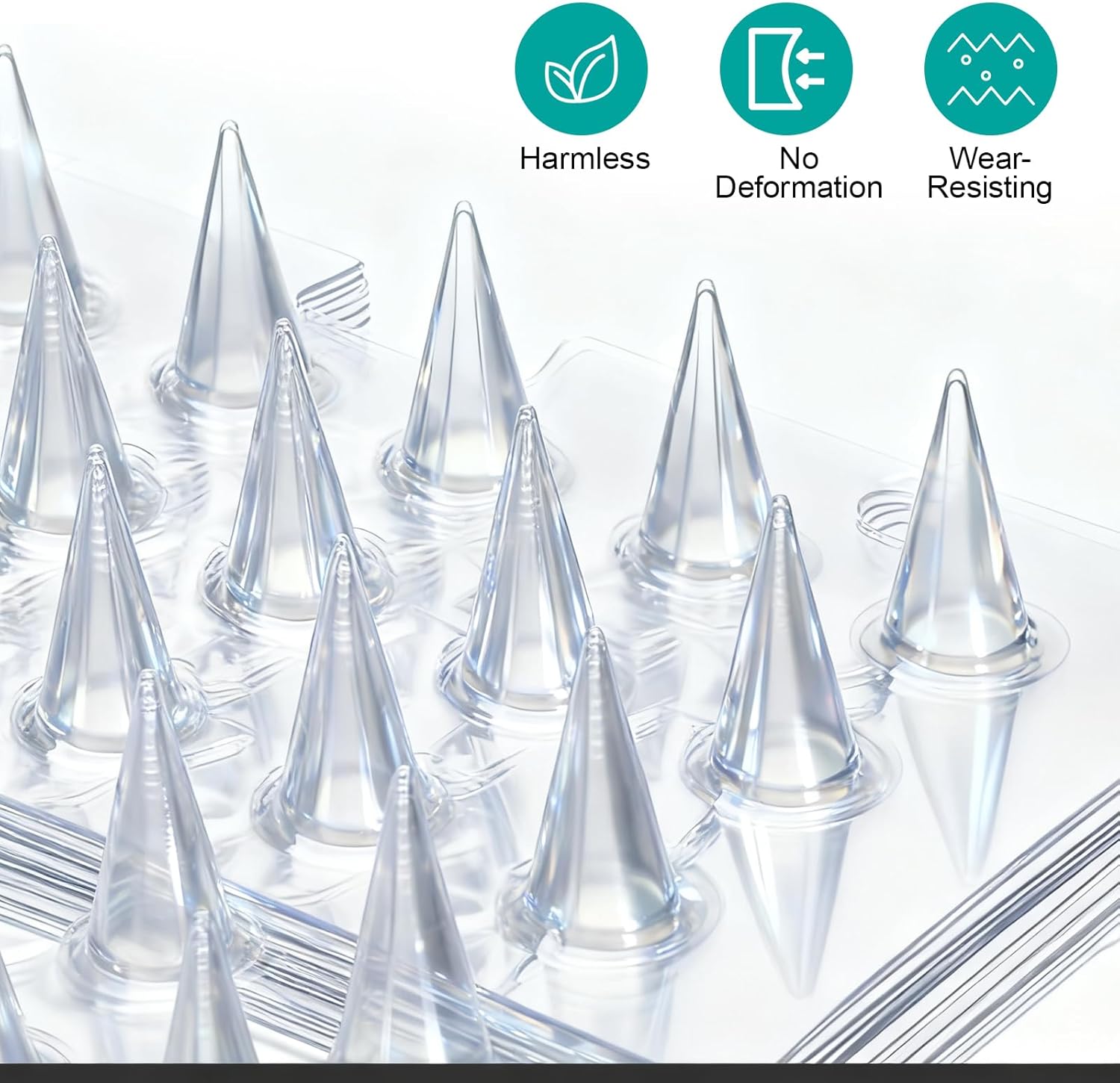 Packaging:16 pcs Transparent Cat Deterrent Mat Cat Repellent MatProduct Name: MatMaterial: PlasticColor: TransparentDimensions (cm): Length 42cm/16.5 inches, Width 34cm/13.3 inchesThe spiked mat not only be applied indoors, but also can be applied in windows, doors, balcony, garden or yard, etc., making your pets or other animals keep away from your home items