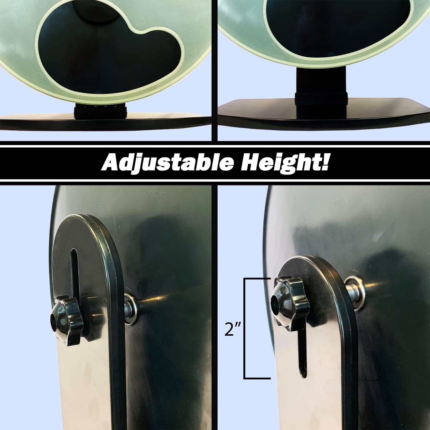 *****PLEASE ENSURE CAGE / CAGE DOORS ARE 14 INCHES TALL OR MORE! Exotic Nutrition's Silent Runner 12" Wide Wheel is the most innovative wheel on the market for its safety features and whisper-silent spin. Special night-illumination allows you to watch your pet run while they enjoy their natural dark habitat. Great for sugar gliders and other nocturnal pets! MEASURES: 13.5" tall on stand, 12" wheel diameter, 4" wide track, 4" diameter openings, 5" wide on stand. INCLUDED: Silent Runner Wheel, Stand, and Cage Attachment (Accessories sold separately) FEATURES: ✔ SAFE - The axle-free design eliminates a dangerous center bar, reducing the risk of fur/tail entanglement, pet wrap-a-round, curvature of the spine, and other injuries. ✔ SILENT - Innovative dual ball-bearings create a whisper-silent spin. ✔ NON-SLIP - Running tracks are textured, for excellent grip. ✔ SANITARY - Wheel completely disassembles for deep cleaning, no nooks for feces to hide in. ✔ SECURE - Closed off design with front plate for privacy, safety, and containment. With natural bean-shaped openings and a pet-preferred solid black rear wall. ✔ HIGH QUALITY - Wheel is made of high-quality plastic. ✔ JOINT PROTECTION - The stand allows for give, protecting your pet rom joint pain caused by running on a hard, fixed surface. ✔ IDEAL FOR - Hedgehogs, Rats, Sugar Gliders and other similar small animals (not suggested for chewers). What is dual ball-bearing technology? Two stainless steel ball-bearings within the back plate ensure the wheel glides smooth and silent. The bearings SPIN around the bolt instead of sliding and creating noise.