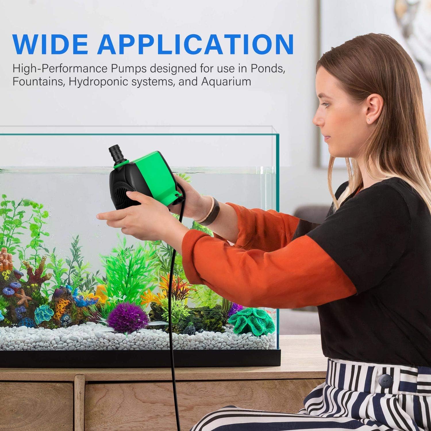 Simple Deluxe 10ft High Lift 800GPH 24W Water Table Pump (3000L/H) with 3 Nozzles, Perfect for Fish Tank, Pond, Aquarium, Statuary, Hydroponics, Fountain, Green