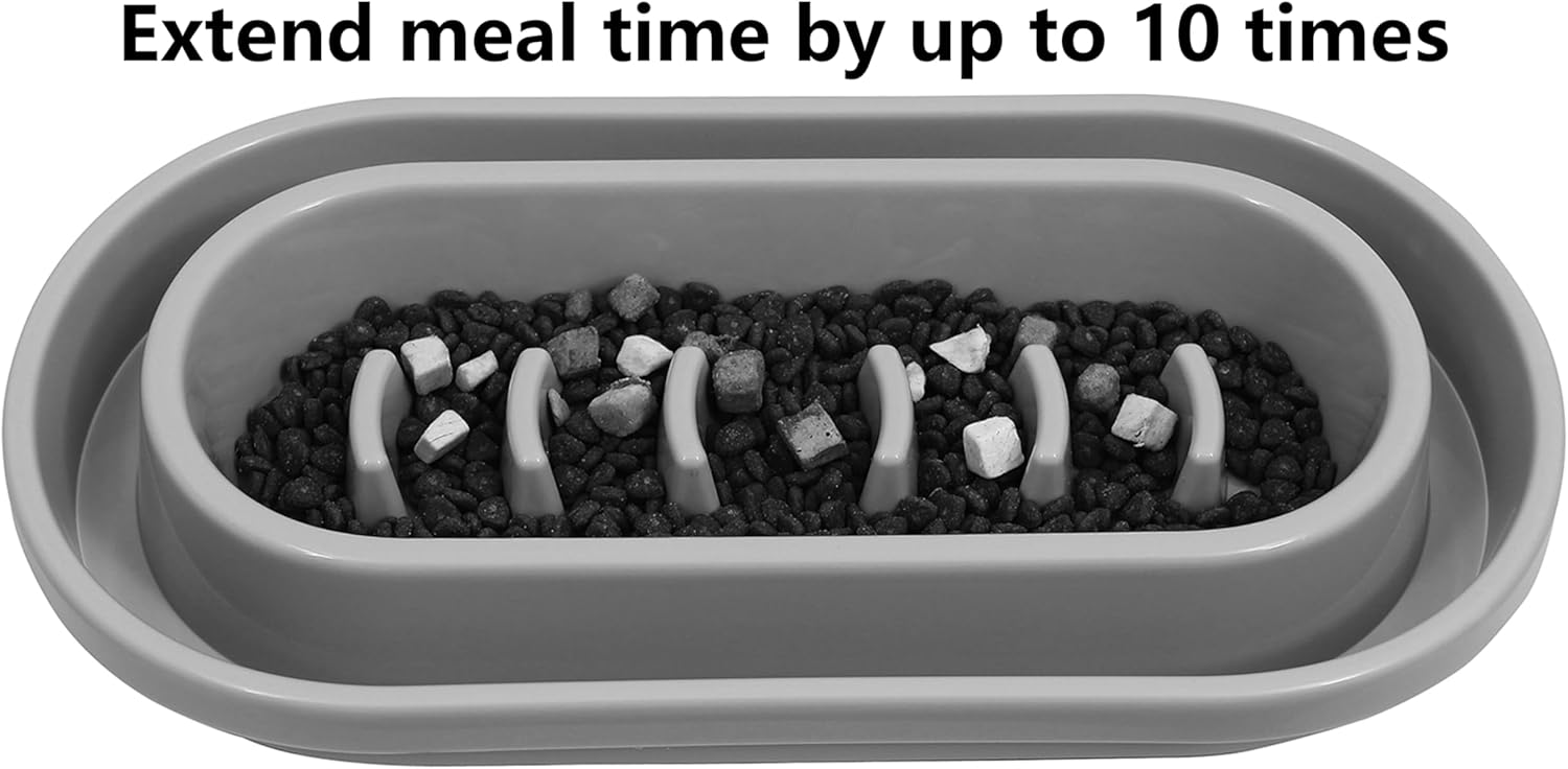 About this item Slow Down Eating: extend meal time by up to 10 times Keep Ants Away: the deep wide circle water moat can keep ants away Non-Slip Base: 4 anti slip pads can effectively reduce the movement of the bowls Durable thick baby bottle material for long time use Easy to use and can be used in dishwasher › See more product details