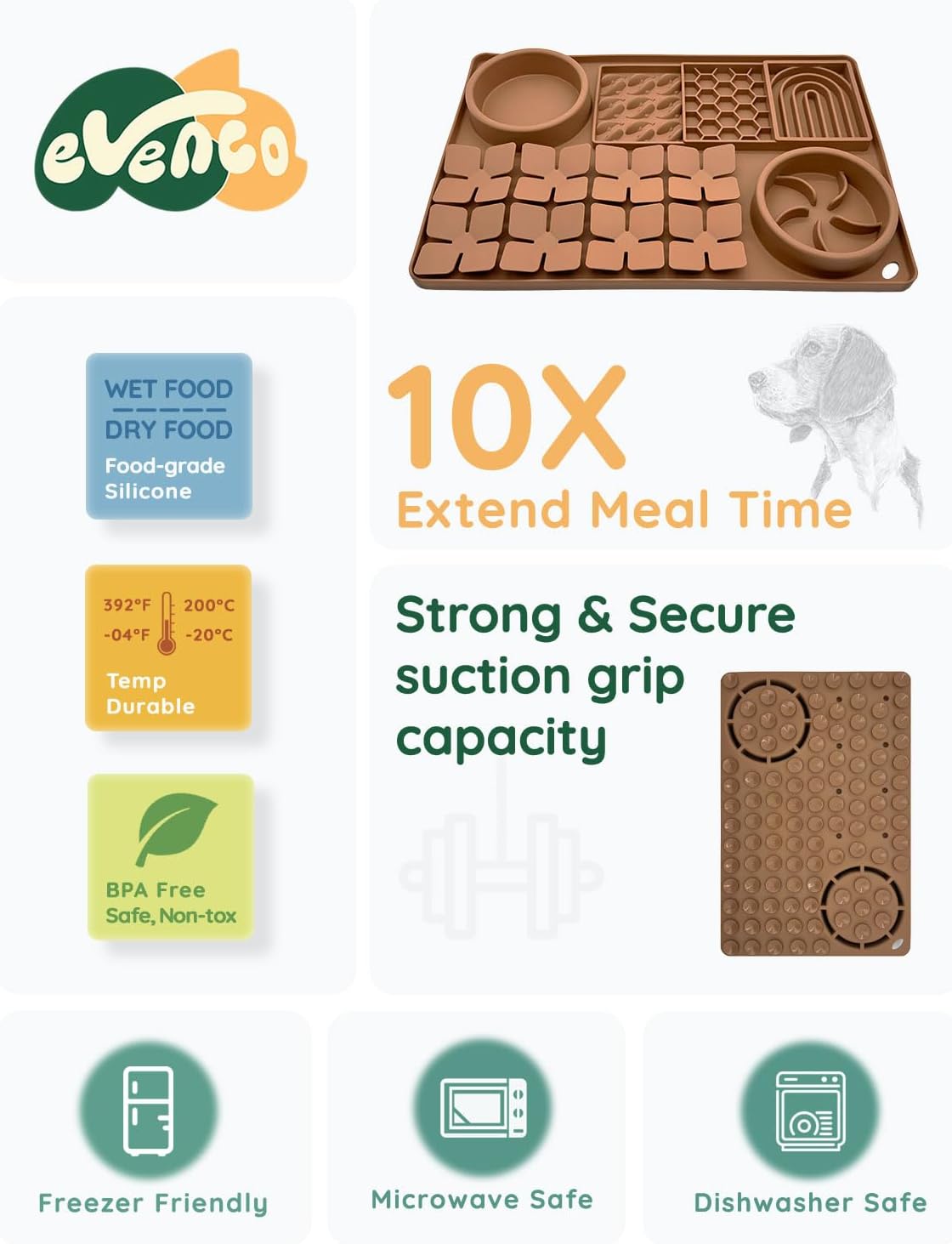 Evenco Slow Feeder Bowl with Suction Cups for large and small dogs, Snuffle Mat for Pet Smell Training, Puzzle Toys for Bored Puppy