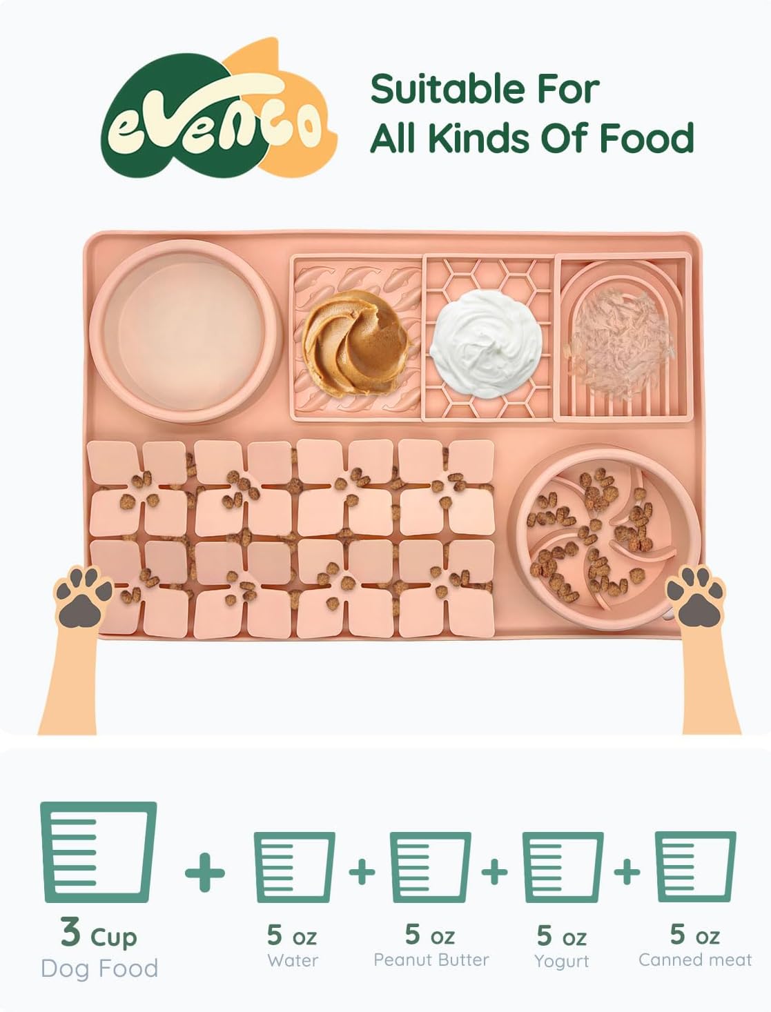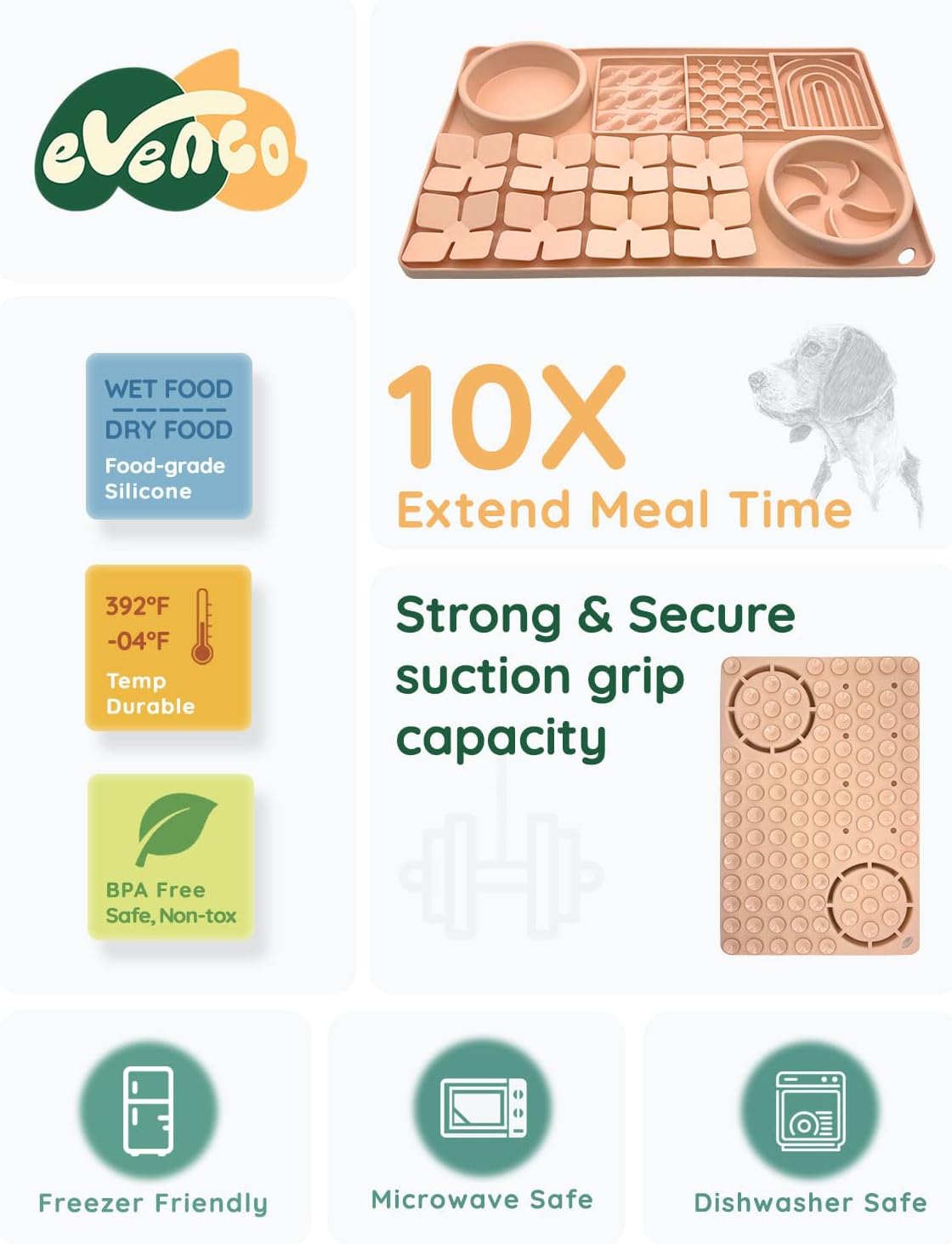 Evenco Slow Feeder Bowl with Suction Cups for large and small dogs, Snuffle Mat for Pet Smell Training, Puzzle Toys for Bored Puppy