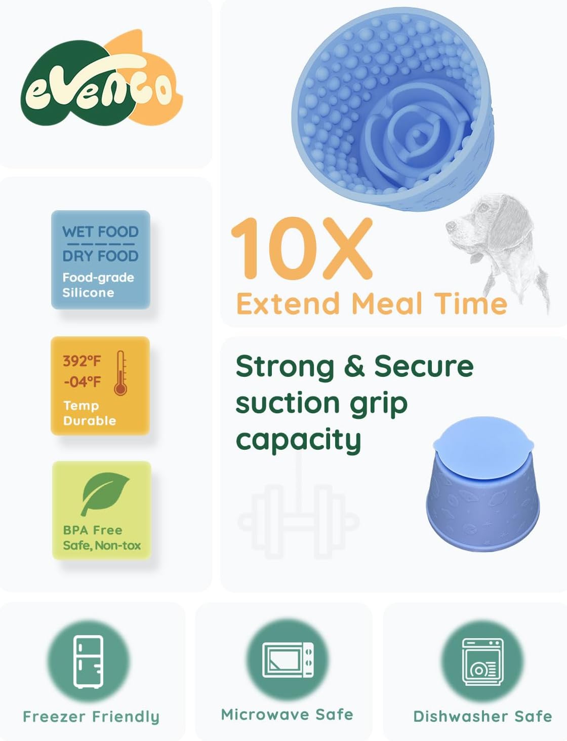 Evenco Silicone Slow Feeder Bowl with Suction Cups, Freeze-Friendly Lick Bowl for Enrichment Play, Anxiety Relief & Keeps Busy