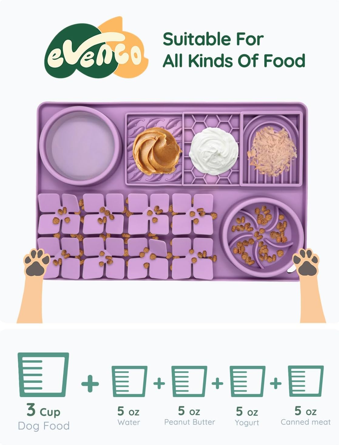 • GENTLE & LICK-FRIENDLY DESIGN Unlike traditional rubber, our bowl is made from food-grade silicone that's soft, flexible, and gentle on your dog's mouth and nose—allowing them to reach every last bit of food, especially with spreadable snacks.
