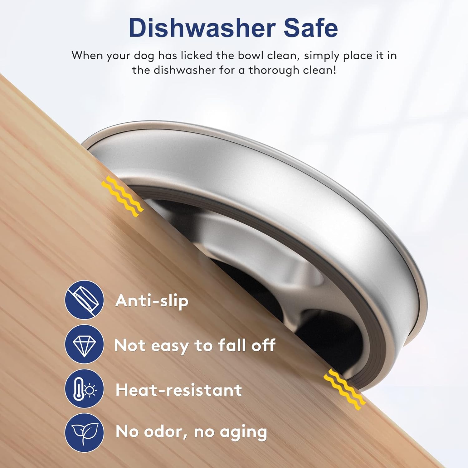 About this item Our stainless steel slow food dog bowl features an innovative design that slows eating, reducing choking and bloating risk. The one-piece mold makes cleaning and maintenance easy. Our bowl ensures your dog gets the best nutrition and mealtime. Metal slow feeder dog bowls has a non-slip base, preventing it from sliding or tipping over and making it easier for your dog to eat, also protecting your floors from scratches, spills and messes. High-end polished finish makes the dog bowls healthy, sturdy, long-lasting, odorless, better stain-resistant, and rust-resistant performance, withstand years of use. Increase the difficulty level to effectively slow down their eating speed. Internal barriers are very friendly to their mouths and won't hurt them. Even if the dog licks the bowl clean, just rinse the slow eating bowl with clean water and it won't leave any of their saliva or food residue behind.Of course for the dishwasher is also very safe! The non-slip stainless steel slow food dog bowl comes in two sizes, corresponding to different capacities, so you should select the right size according to your dog's meal size to ensure a slow feeding effect. Tips: It is recommended to pour 1.5-2 cups of food into a stainless steel slow food dog bowl so that the slow food effect can be optimal. The maximum capacity of the dog bowl is 4 cups, but it will completely fill the internal barrier of the Slow Food Dog Bowl, so when the dog is finishing the top half food, the bottom half food will still slow them down. Dog Bowls Size: 1.6" (Height) x 8.6" (Diameter) › See more product details