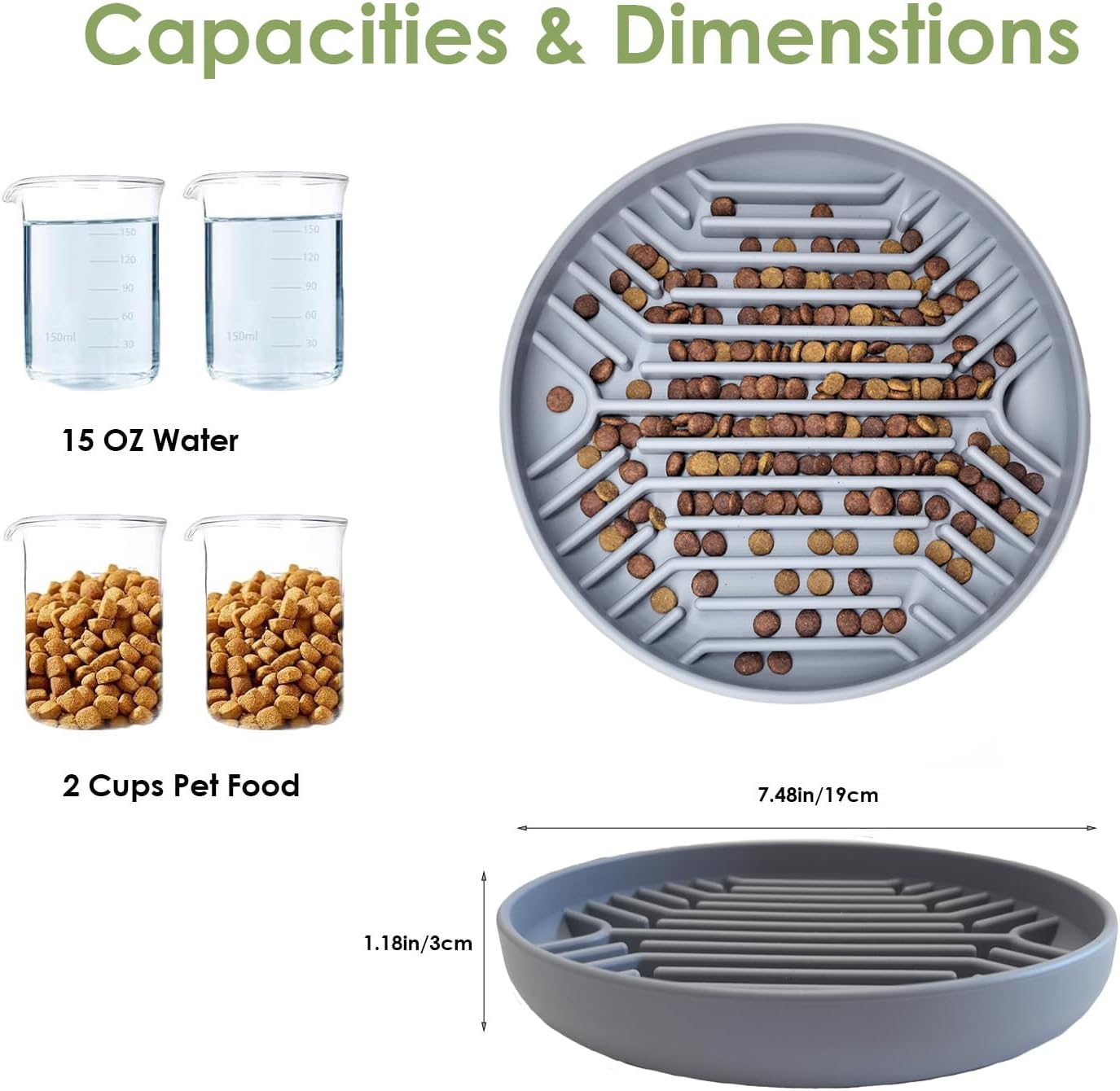 About this item Promote Fun and Healthy Eating:The pet slow food bowl combines two pattern designs to increase the fun of eating for your dog, Promote Slow Eating,Reduce Overeating,Mental Stimulation,Improves Digestion,Prevent Choking Food-Grade Material:Made of non-toxic food-grade silicone, our sturdy slow feeder dog bowls can be safely used with dry food or wet food. The Pet Feeder is highly flexible and doesn't break easily,very safe for dogs and cats to use. Easy to Clean:This slow eating dog bowl is well-designed and easy to clean, can be rinsed directly under water or in the dishwasher,Unlike plastic and ceramic bowls, the silicone bowl is hard to break and does not deform easily Non-Slip Suction Design:The bottom of the bowl has an absorbable suction cup base that can be firmly attached to the pet feeding mat or floor,preventing the bowl from sliding or tipping over while the pet is eating Slow Down Eating: Unique Design and Fun Feeder dog bowls feature meal-lengthening ridges to help slow down your dog’s eating time by 5X › See more product details