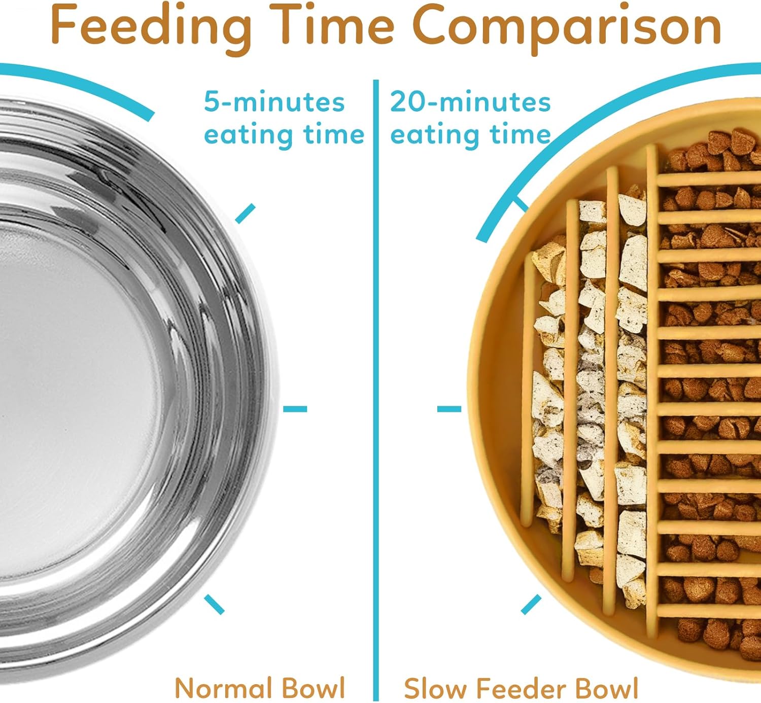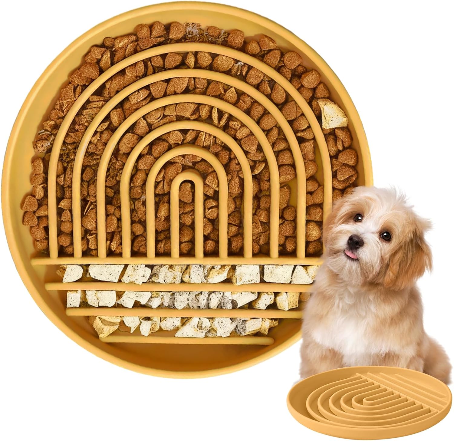 About this item 【Food-Grade Silicone】---Made of 100% edible silicone, safe, non-toxic, environmentally friendly. Silicone material is more flexible and sturdy than traditional plastic bowls, no longer chewed by dogs. 【Slow Feeder】---The labyrinth pattern design hinders dogs from eating and effectively prolongs their eating time. Prevents choking, promotes digestion and gives your dog a healthy body. 【Easy to Clean】---This slow feeder dog bowl is dishwasher safe. Of course if it's just after placing regular dry dog food, you can rinse it with water and it will be clean. 【Stays Put with Suction Cups】 Strong suction cups keep the slow feeder dog bowl in place, preventing spills and mess, even if your dog is enthusiastic during mealtime. This feature makes it an ideal choice for cat slow feeders as well 【Versatile Size】 Measuring 7.5 inches in diameter and 1.5 inches in height, it accommodates different food types and is ideal for small to medium sized dogs and cats. It also provides mental stimulation during mealtime › See more product details