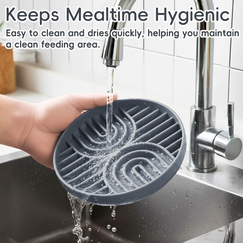 About this item Promotes Healthy Eating: Designed with a intricate maze-like pattern that slows down eating pace, encouraging dogs to eat at a healthier, more natural rate. This aids in digestion and significantly reduces the risk of bloating and gastrointestinal discomfort. Durable Silicone Construction: Crafted from premium, food-grade silicone material that is durable, non-toxic, BPA-free, and safe for pets. It withstands daily wear and tear, ensuring longevity without compromising your dog's health. Non-Slip Base: Say goodbye to messy meal times! Equipped with a sturdy non-slip base to keep the bowl stable and secure during mealtime. This feature prevents it from sliding across floors or tipping over, promoting a mess-free feeding environment. Easy to Clean: The silicone material is easy to clean and maintain. It is dishwasher-safe for effortless cleanup, allowing you to keep the bowl fresh and hygienic after every use with minimal effort. Suitable for All Breeds and Sizes: Generously sized at 7.5 inches across and 1.4 inches tall, this bowl accommodates dogs of various breeds and sizes. It provides ample space for comfortable feeding while promoting portion control and reducing the risk of overeating. › See more product details