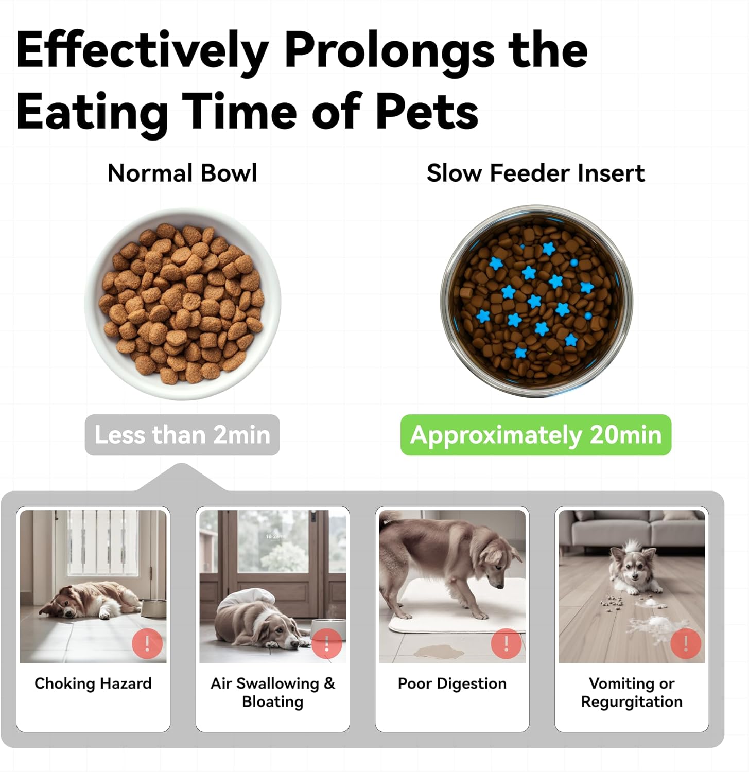 Enhance your pet’s mealtime with this innovative Slow Feeder Insert. Made from food-grade silicone, the star-shaped raised nubs and strategically placed pegs encourage slower, more mindful eating to prevent choking and digestion issues. Strong suction cups on the base secure the insert firmly inside most cat and dog bowls, keeping it in place even with enthusiastic eaters. Perfectly sized for puppies, small and medium breeds, this flexible insert is dishwasher-safe and easy to clean, promoting healthier feeding habits and reducing mealtime mess.