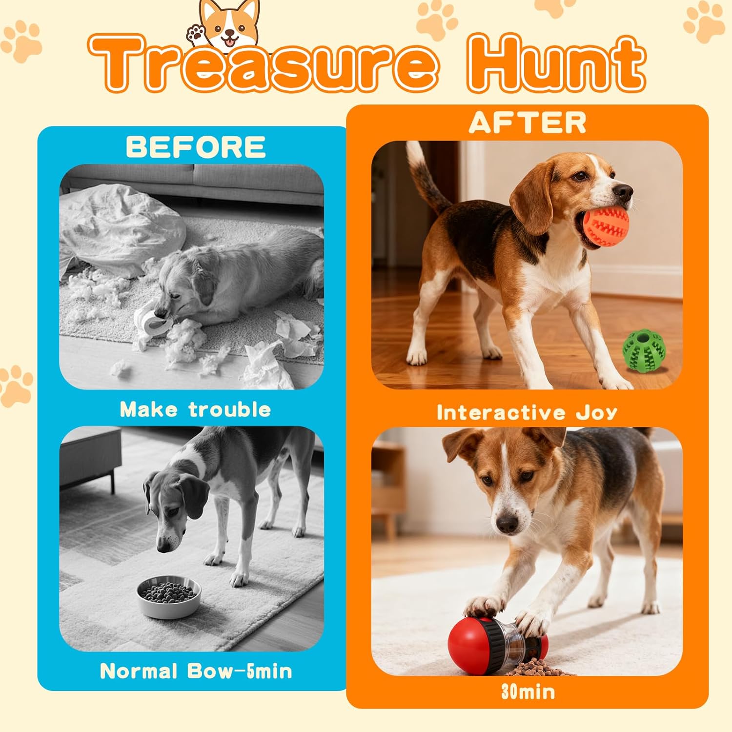 Slow Feeders Set: Includes a licking mat, a treat dispenser ball, two treat balls, and a silicone scraper and brush. Thoughtfully designed to combine slow food with engaging games, it helps dogs slow down their eating and stay focused. Lick Mat, Slow Feeding & Improve Digestion:The textured surface design is perfect for extending the feeding time to prevent bloating and choking risks, helping your dog,cat cultivate a good eating habit and aiding digestion, promoting oral health Treate Dispenser Balls, Full of Fun: Turns treats into an exciting game. Dogs can roll, push, and paw at treats. Adjustable knobs on each ball accommodate different food sizes and control the amount dispensed, keeping your dog active and eating at a healthy pace. Interactive Treat Balls, Enhancing Parent-Child Interaction: These treat balls create fun and interactive experiences, allowing you and your dog to share joyful moments. Perfect for play, such as fetch, hide-and-seek, or daily training, these toys promote healthy interaction, build trust, and strengthen your daily bond with your dog. Safe materials, fun play: Made with pet-safe materials to ensure both fun and safety. Please note that while these toys can stimulate your dog's interest and engagement, they are not suitable for dogs that like to chew. It is recommended to use them under owner supervision to ensure your dog's safety. › See more product details