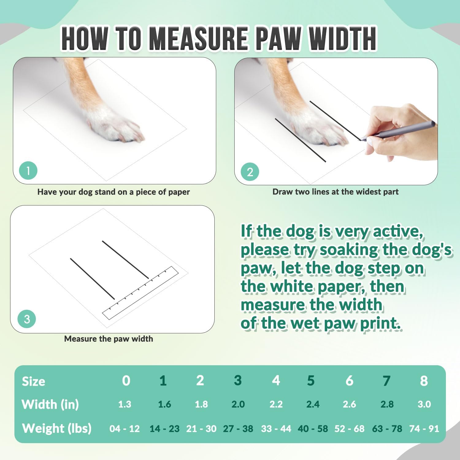 About this item 【Comfortable & Breathable】The dog shoes Adopt three layers of mesh and Premium rubber soles. And the design of the dog boots fit the shape of the dog's paw. It is soft and comfortable, breathable, not stuffy, and will not cause rubbing or chafing on your dog's paw. High quality fabrics can effectively protect dog paws from hot pavement and sharp stuff, such as stones and glass. It can also protect injured paws and weak paws from snow and ice in winter. 【Dual ADJUSTABLE & SECURE】These doggie boots have two nylon straps and dual adjustable fasteners, which can be adjusted according to the actual situation, choose the appropriate tightness to ensure tight fit. Plus, the strap is reflective that allows pedestrians and passers-by can notice your dogs and provide protection for them at night. 【Waterproof & Reflective】The toe parts of dog booties are made of space leather material, which is durable and waterproof. The reflective design on the dog shoes can improve visibility in the dark and quickly locate the dog's position to provide protection for the dog. It is suitable for outdoor walks, night running, and hiking. 【How to Put on】1. Fully extend the opening; 2. Slide the dog's paw inside until it touches the front; 3. Secure the opening with the hoop and loop strap; 4. Adjust the strap to ensure a snug but comfortable fit, avoiding excessive tightness 【Rugged & Anti-Slip Soles】 The soft rubber-soled material provides strong stability and grip for your dogs. It can effectively protect the dog's safety so dogs will not slip to hurt in the rain.The shoes for dogs help dogs to stand up on wet floors more easily and move freely. Warm tip: The softness of the rubber sole will change in temperature. The rubber sole will harden in a low-temperature environment, it's recommended to use the shoes indoors in winter 【Size Option】Optimal Fit with 8 Size Options. Our size is based on the inner diameter of the boots for dogs, please be sure to measure the width of your dog's paws carefully cause it is the key to choose the correct size for your dog. You can refer to the size chart to select the appropriate size for your dog to obtain the most comfortable fit. › See more product details